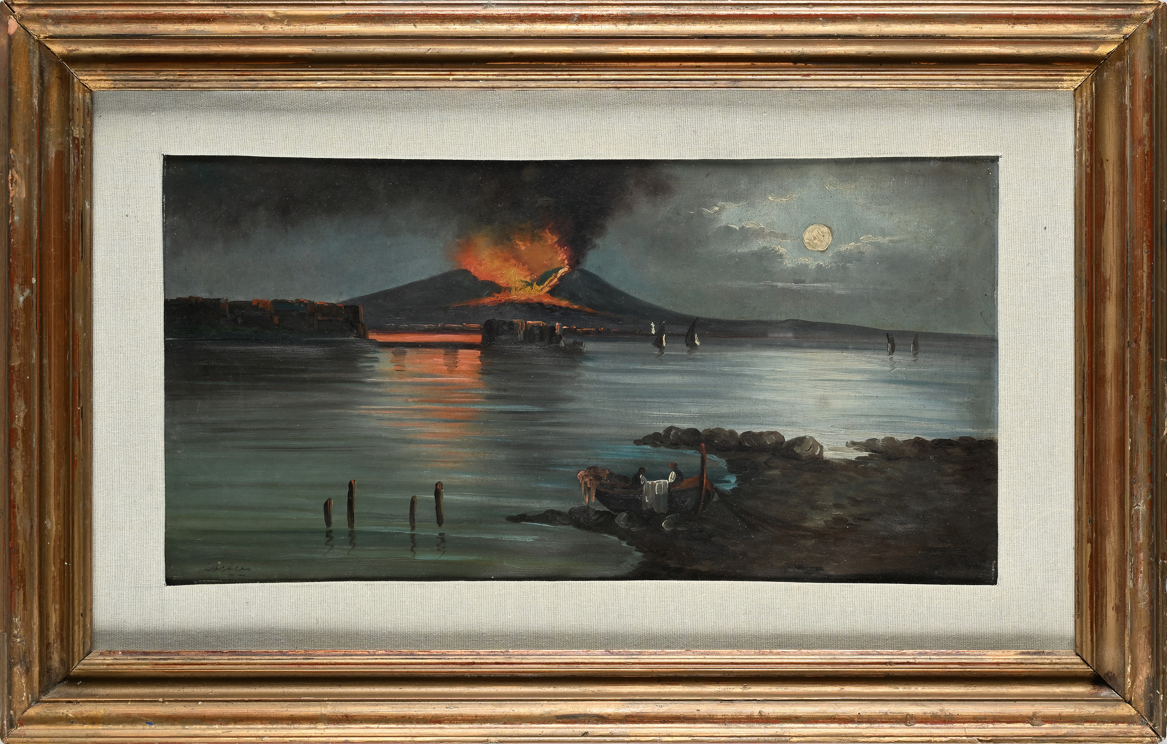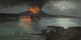 Veduta di Napoli con eruzione notturna del Vesuvio