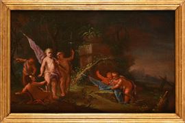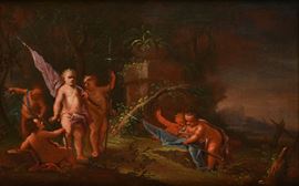L’opera, di formato orizzontale, rappresenta un’allegoria infantile ambientata in un paesaggio immaginario con rovine classiche. Un gruppo di putti inscena una battaglia: a sinistra, su un piano rialzato, i vincitori portano la bandiera, e uno di loro, in atteggiamento trionfante, rinfodera la spada; a destra, su un livello inferiore, due putti sconfitti depongono il proprio vessillo, in segno di sconfitta.