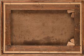 La pittura degli incarnati e l’uso morbido e luminoso del colore richiamano le caratteristiche della scuola veneziana del primo Settecento, apprezzata per la sua eleganza cromatica e la leggerezza delle scene. Il dipinto, di buone proporzioni, è completato da una cornice lignea dorata non coeva, con doratura rifatta nel corso del XX secolo.