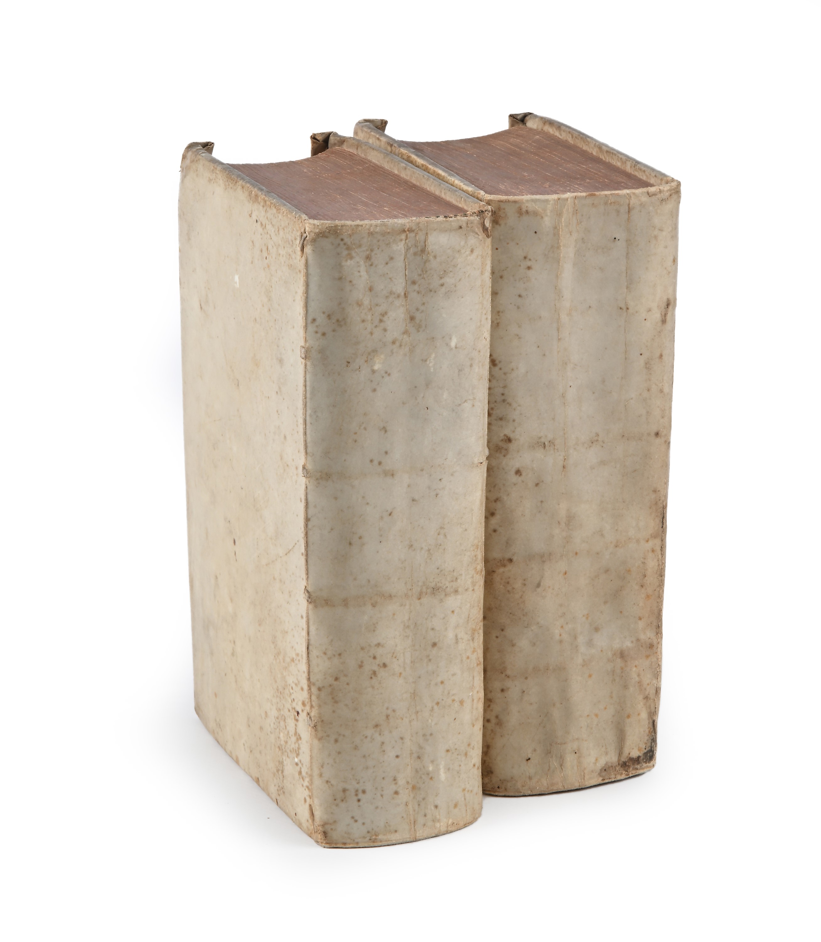 2 volumi. Legature in piena pergamena. Tagli spruzzati. Bel frontespizio al primo volume. Opera ben conservata.