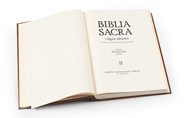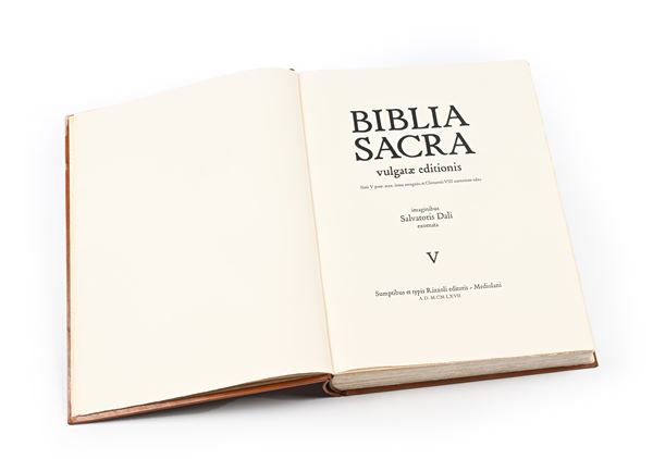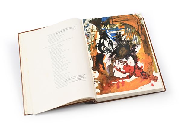 5 volumi + 2 suite di tavole sciolte (in totale 12). Esemplare numero 898/1499. Maestoso in folio, legatura editoriale in pieno marocchino nocciola. Entro imponenti cofanetti con piatti in seta. Opera splendidamente illustrata da Dalì con una serie di disegni all'acquarello e altre tecniche. L'opera è impreziosita dalle 2 suite contenenti 6 tavole sciolte ciascuna.