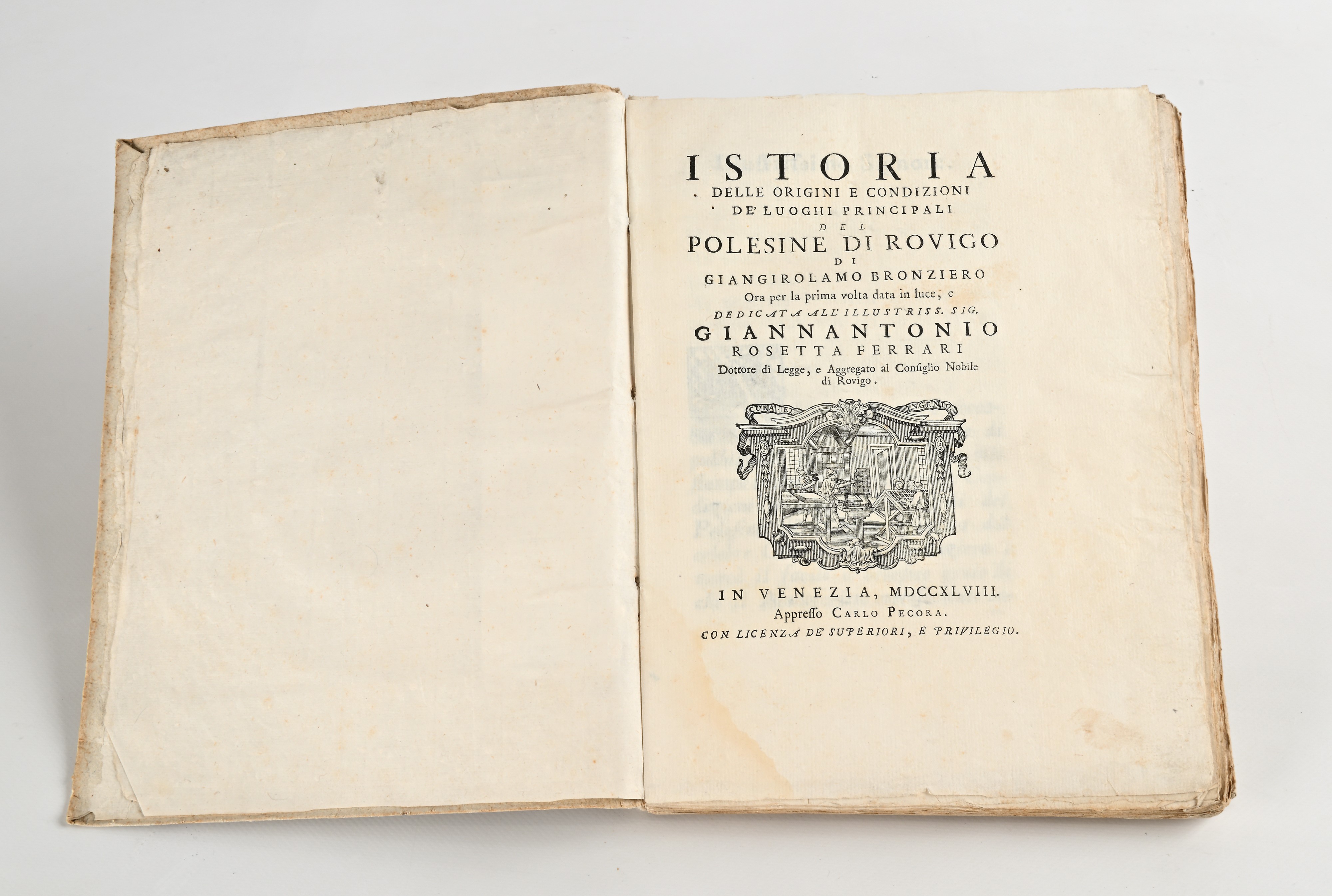 Giangirolamo Bronziero - Istoria delle origini e condizioni de' luoghi principali del Polesine di Rovigo, Carlo Pecora, Venezia 1747