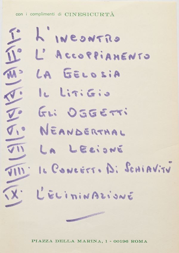 Esposto alla mostra "Mauro Bolognini, un Noveau Regard, il cinema, il teatro e le arti". Pistoia, Palazzo Buontalenti e Antico Palazzo dei Vescovi, 10 Novembre 2022 - 26 Febbraio 2023