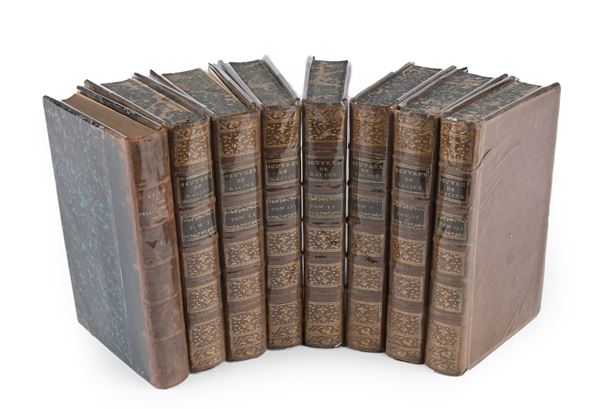7 volumi. Nei v. 6 e 7 il titolo cambia in: Oeuvres diverses de Jean Racine, enrichies de notes et de prefaces; e cambia anche il luogo di pubblicazione: A Londres, che è falso; vol. 6-7 probabilmente stampati a Parigi. Belle legature in piena pelle a 5 nervi con titoli in oro al dorso, decorazioni e filettature ai piatti. Tagli marmorizzati. Numerose illustrazioni fuori testo. Copia molto fresca.