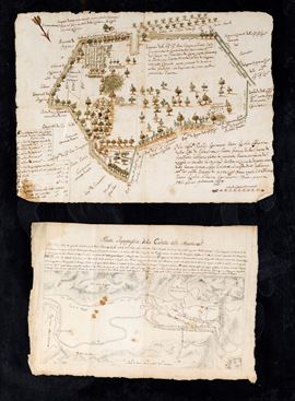 Pietro Agapito Albertini / Pietro Feroci - Pianta agrimensoria di terreni in località Cave, 1729