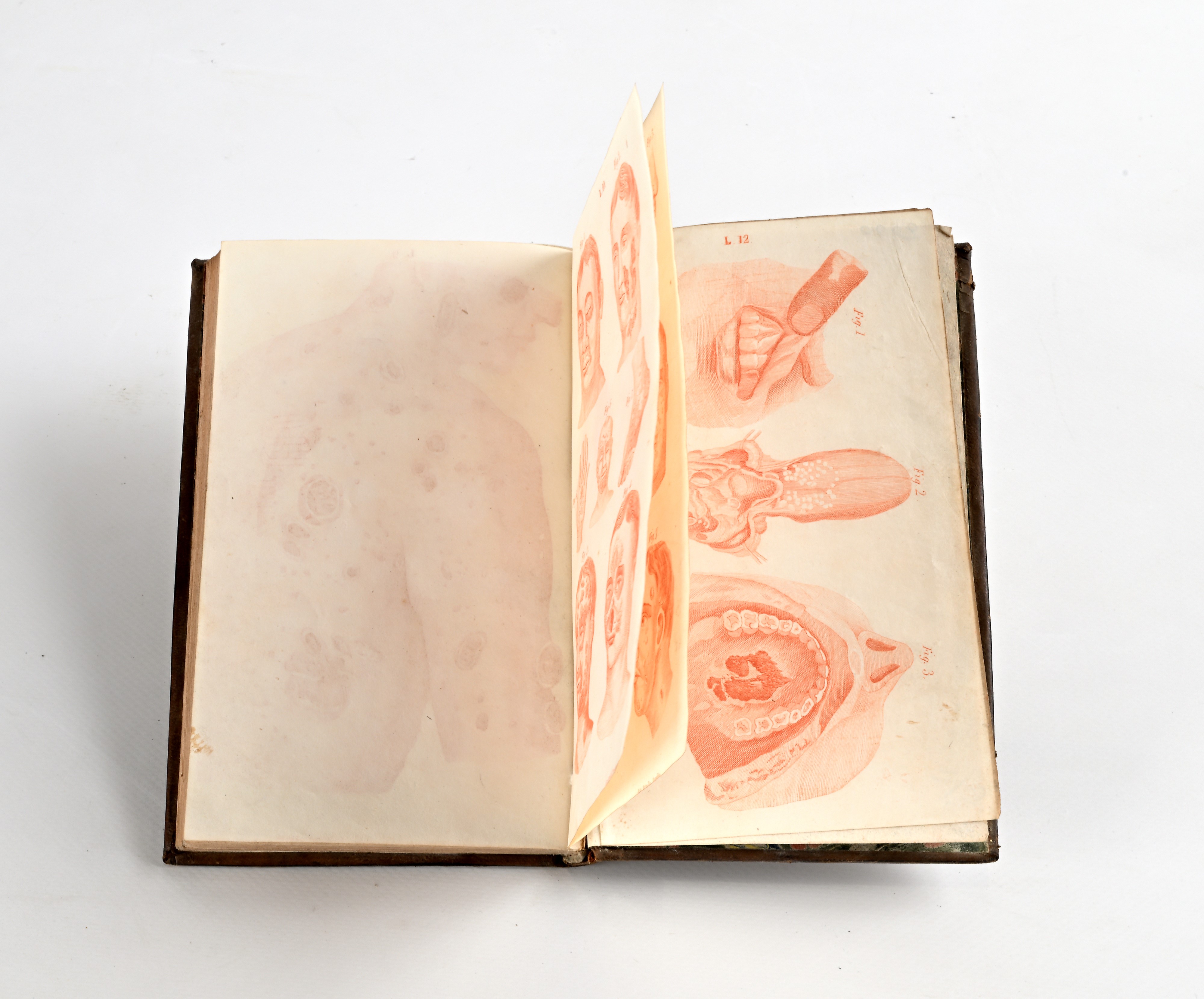 Curioso trattato medico riccamente illustrato con 12 tavole a piena pagina. Legatura in pieno vitello spruzzato con titolo e fregi in oro al dorso