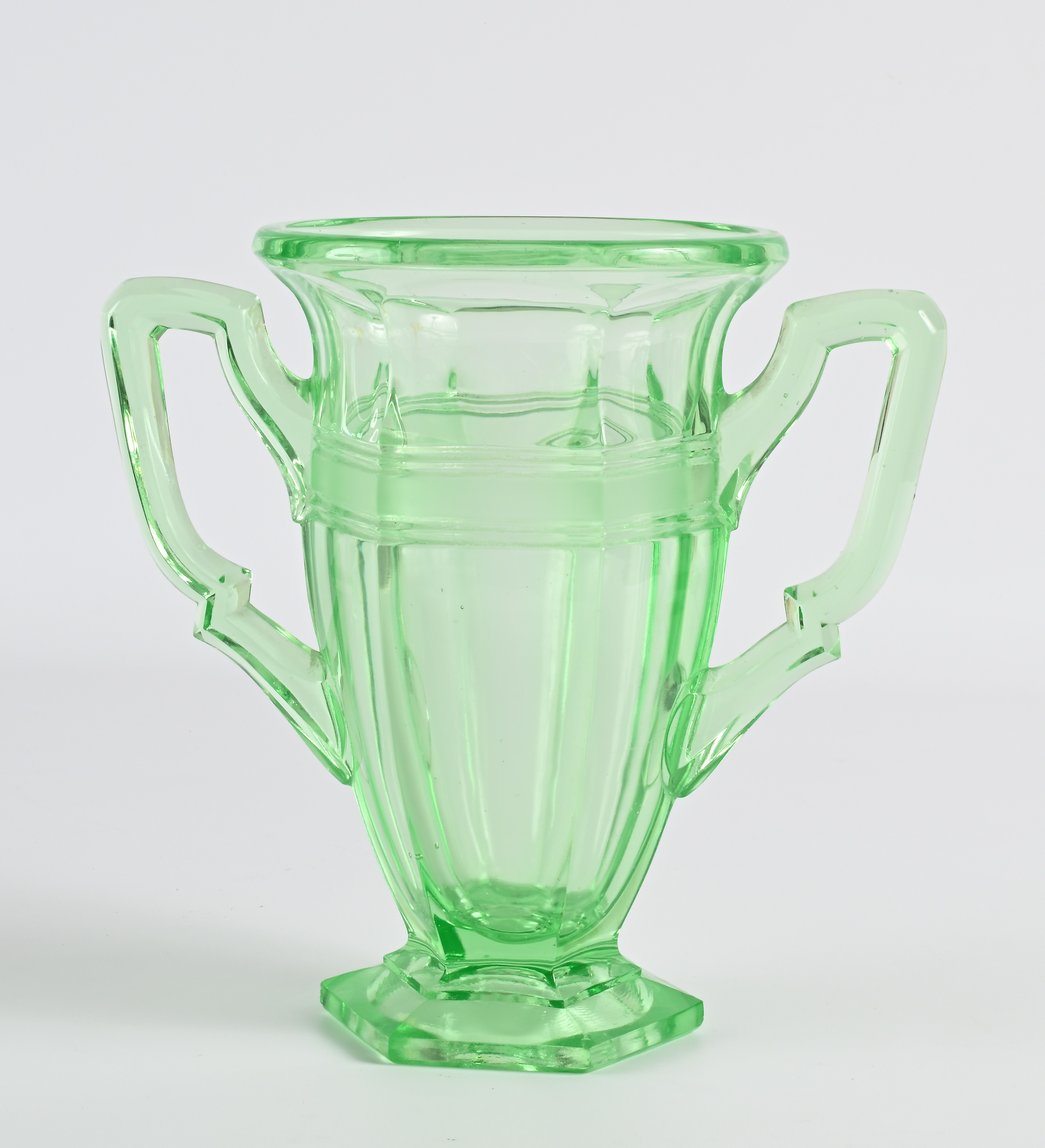Coppa biansata in vetro verde, XX secolo