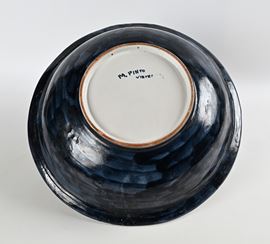 L'interno ed il bordo sono finemente decorati a motivi geometrici e floreali. Sotto la base reca firma "M. Pinto, Vietri"