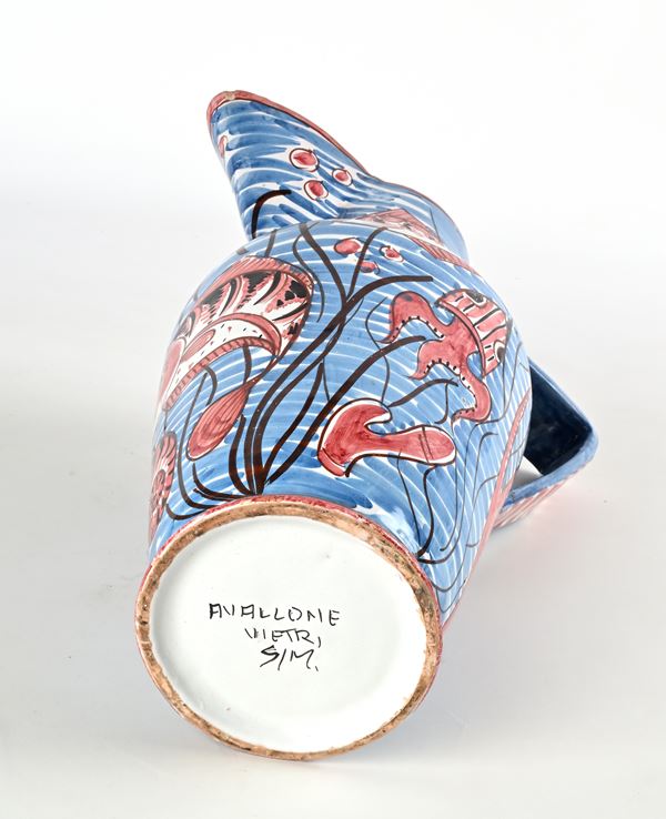 Grande versatoio in ceramica smaltata policroma, manifattura Avallone, Vietri sul mare