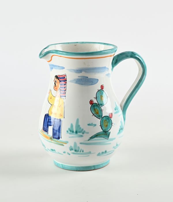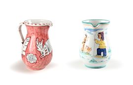 Lotto di due brocche in ceramica dipinta, Manifattura Vietri