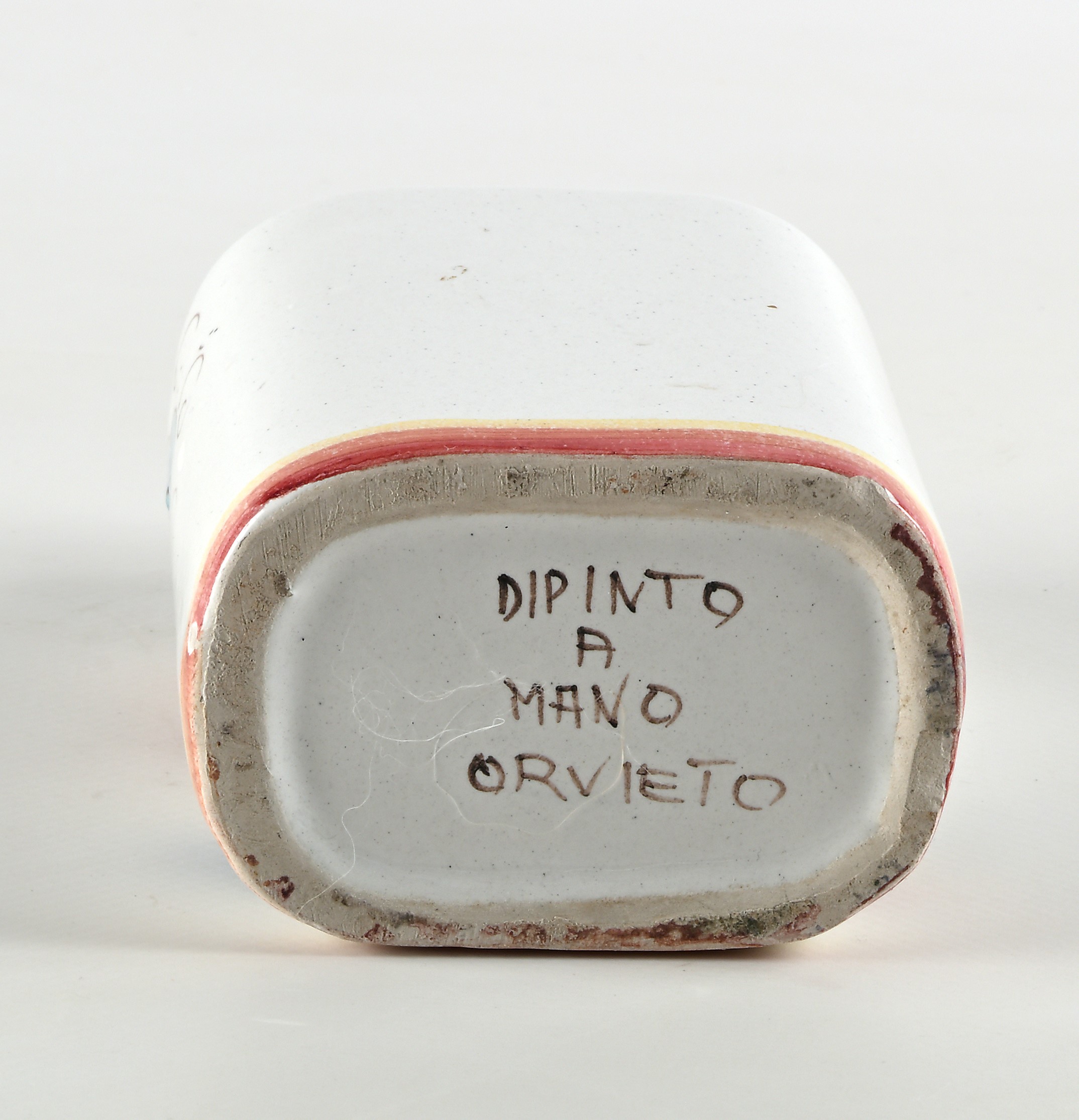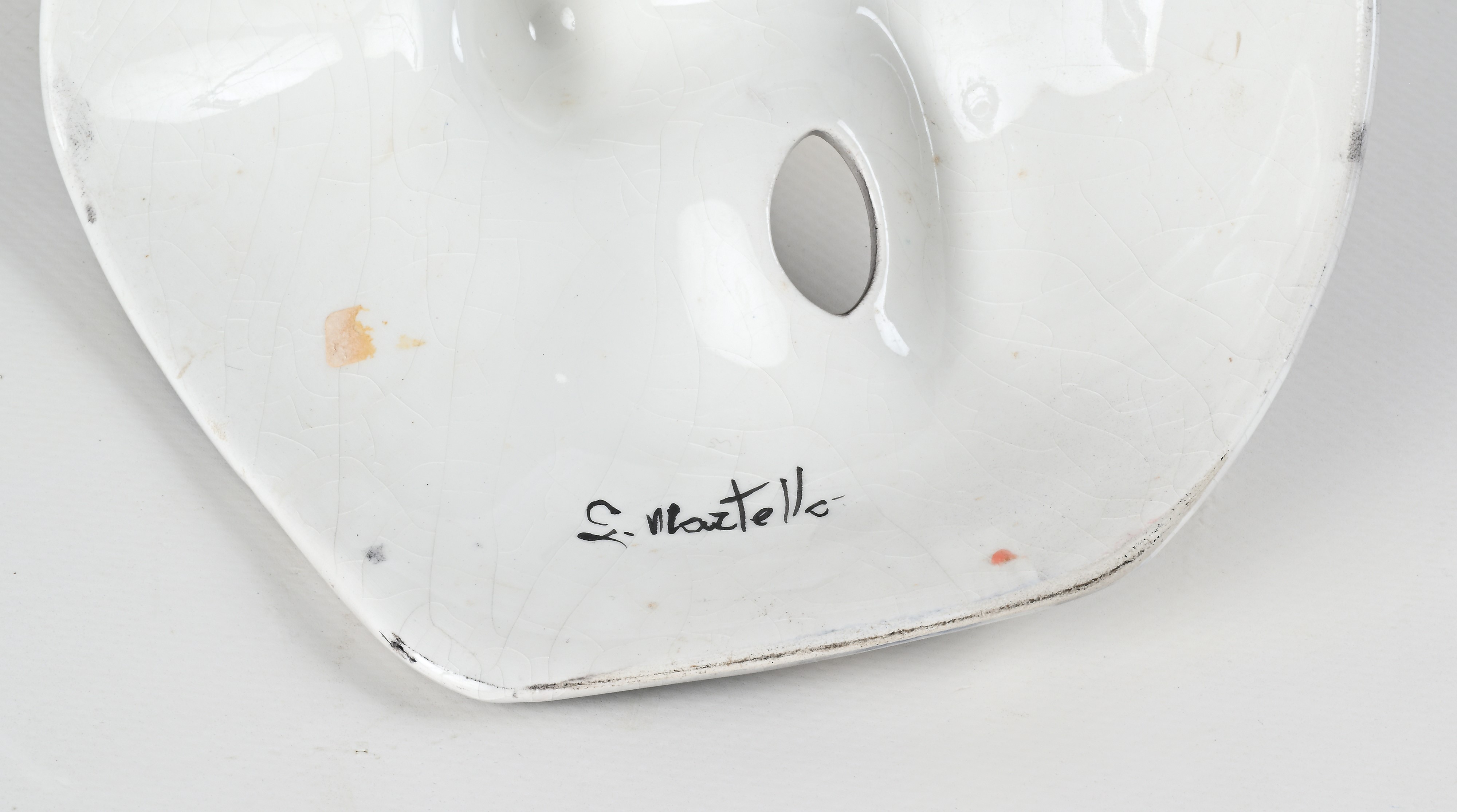 L'asinello misura cm h 32, la maschera misura cm 17x17 ed è firmata "G. Martello", la boccetta misura cm h 14 ed è inscritta "Dipinto a mano Orvieto"