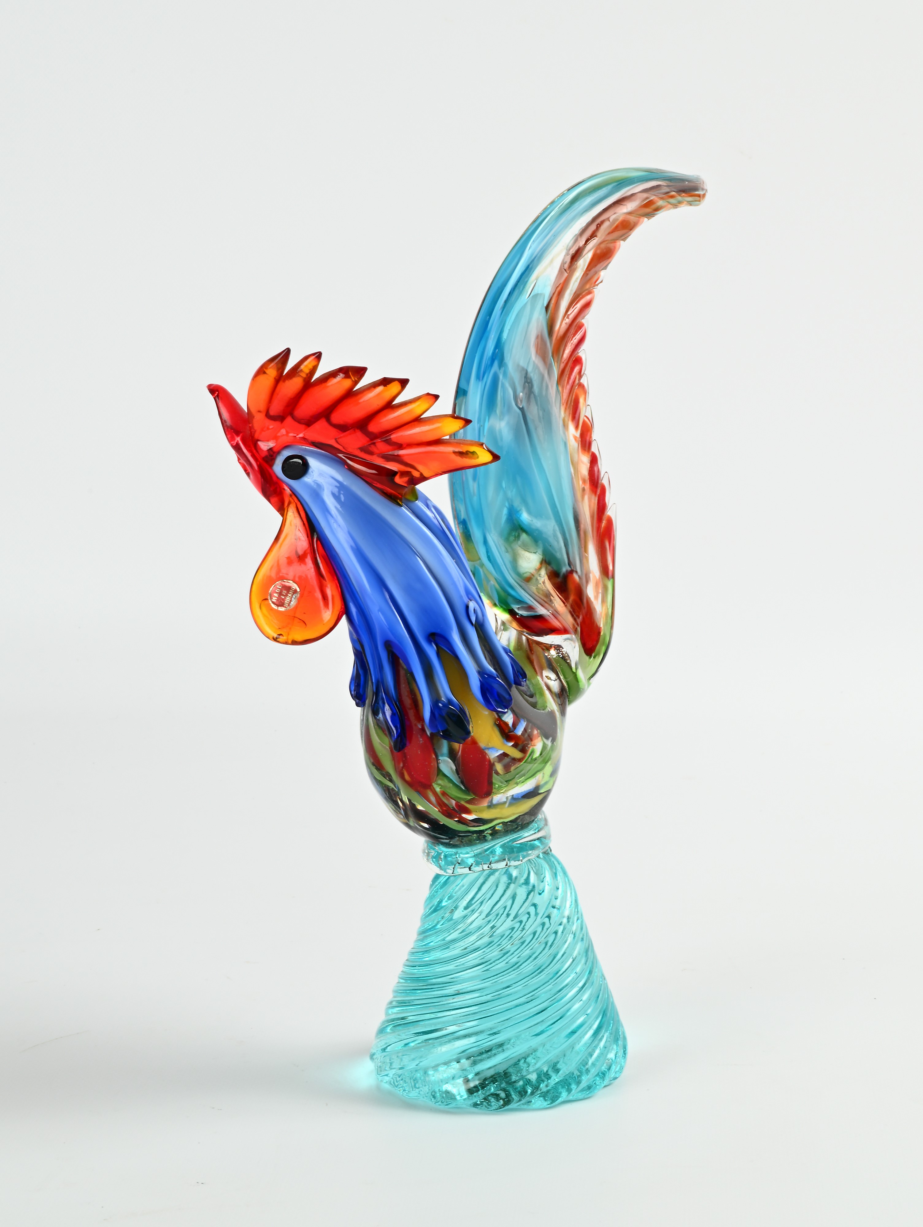 Scultura in vetro di Murano policromo raffigurante un Gallo