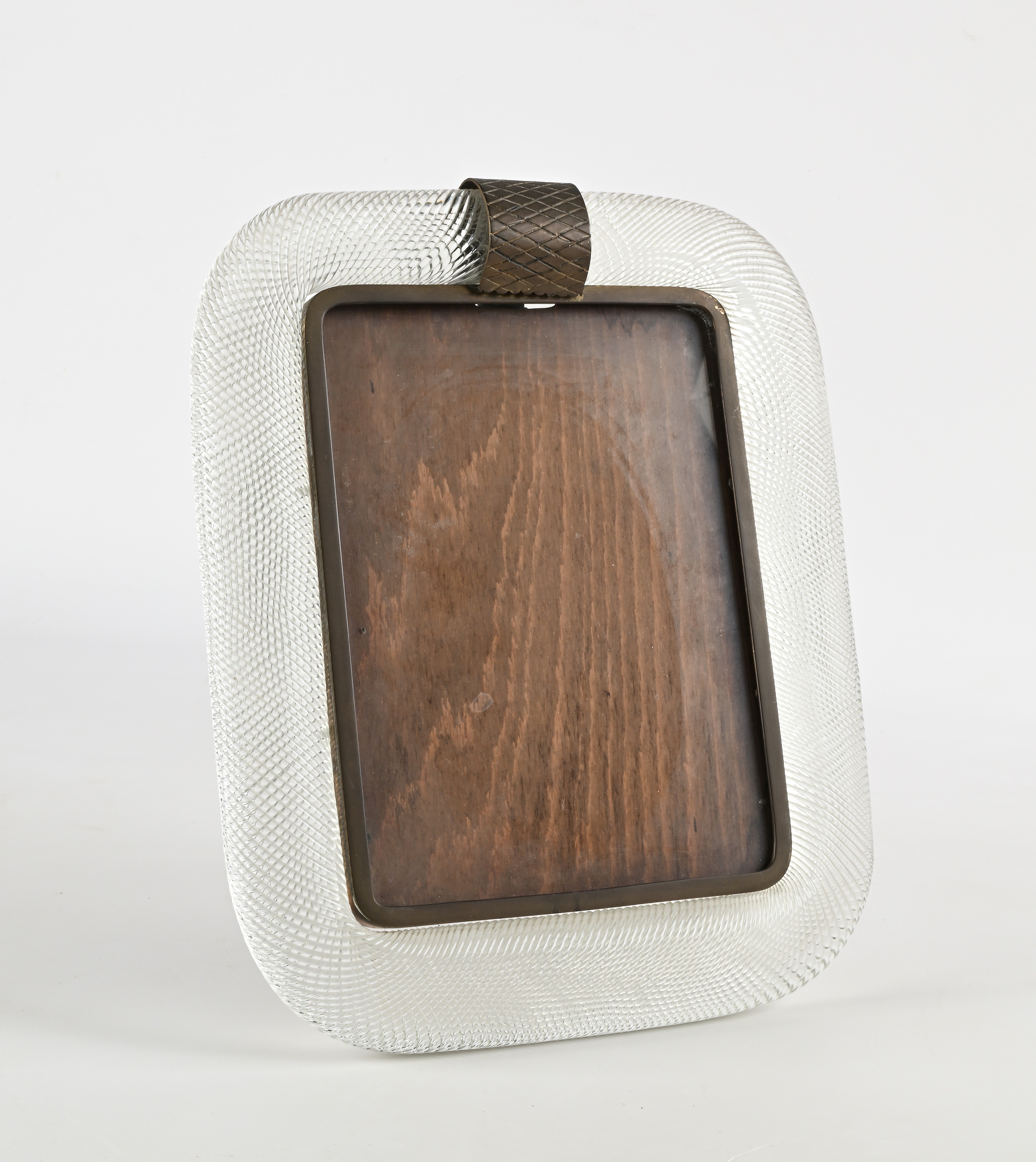 Cornice in Vetro di Murano incolore lavorato a torchon, montatura in ottone