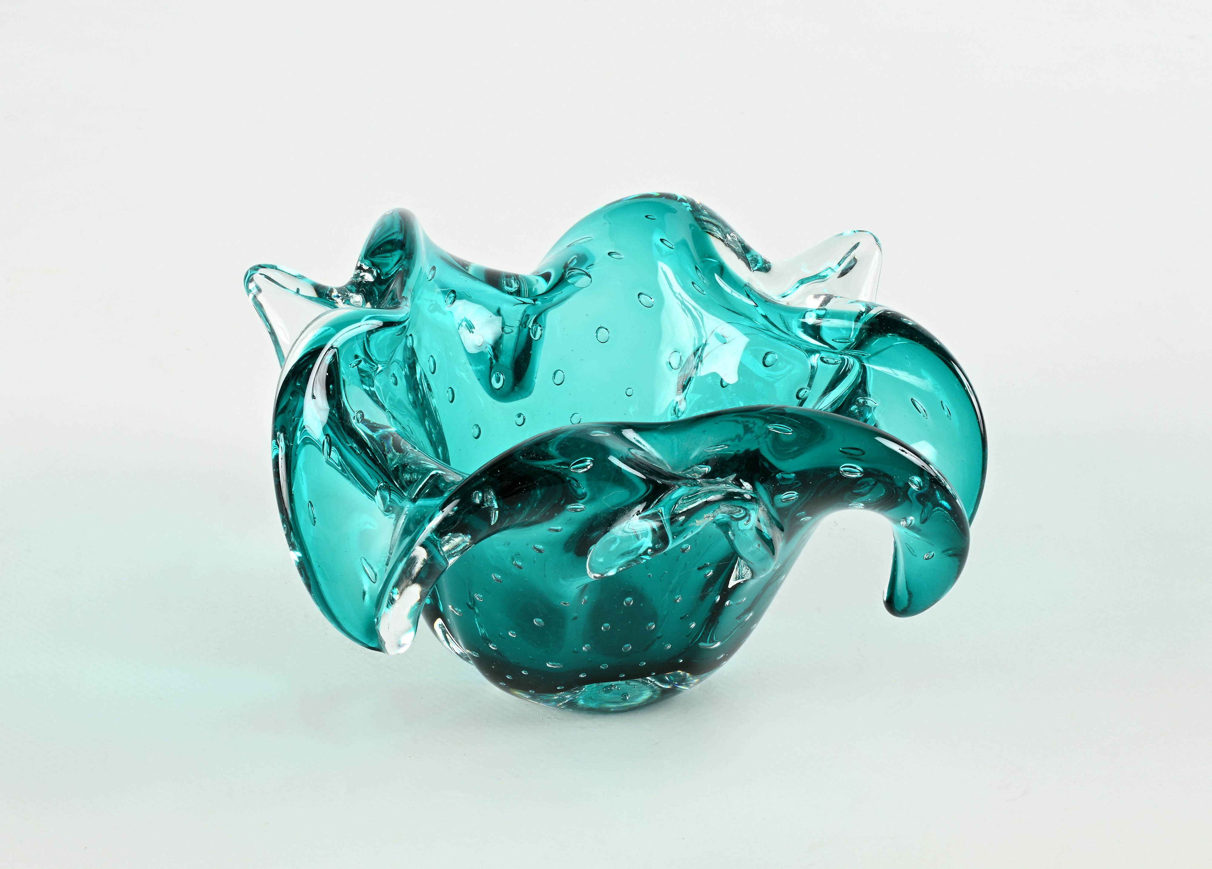 Svuota tasche in vetro pulegoso verde acqua, Murano
