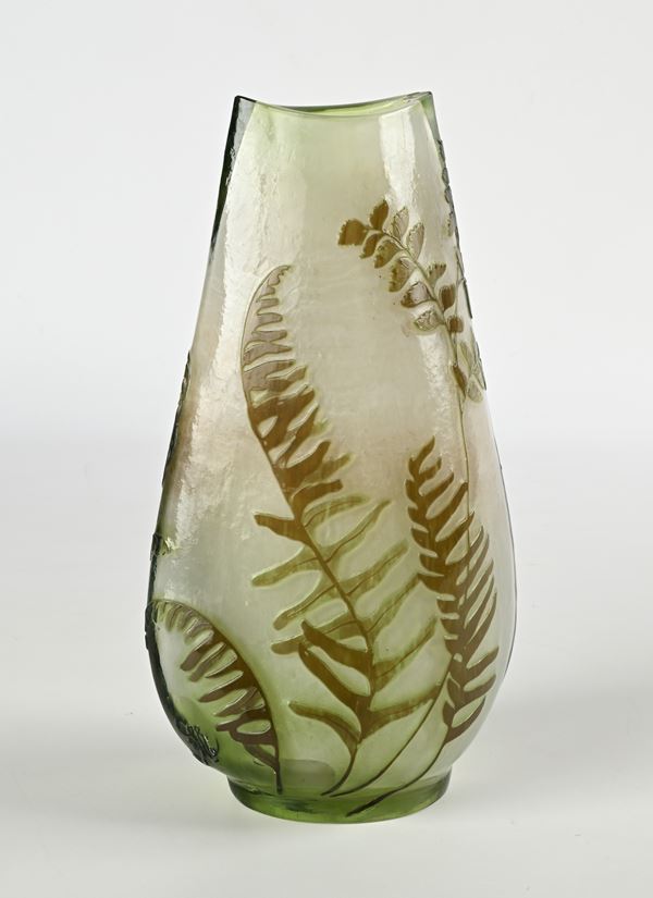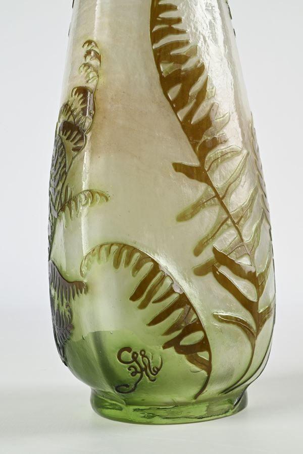 Vaso in vetro verde, produzione Gallè, Francia