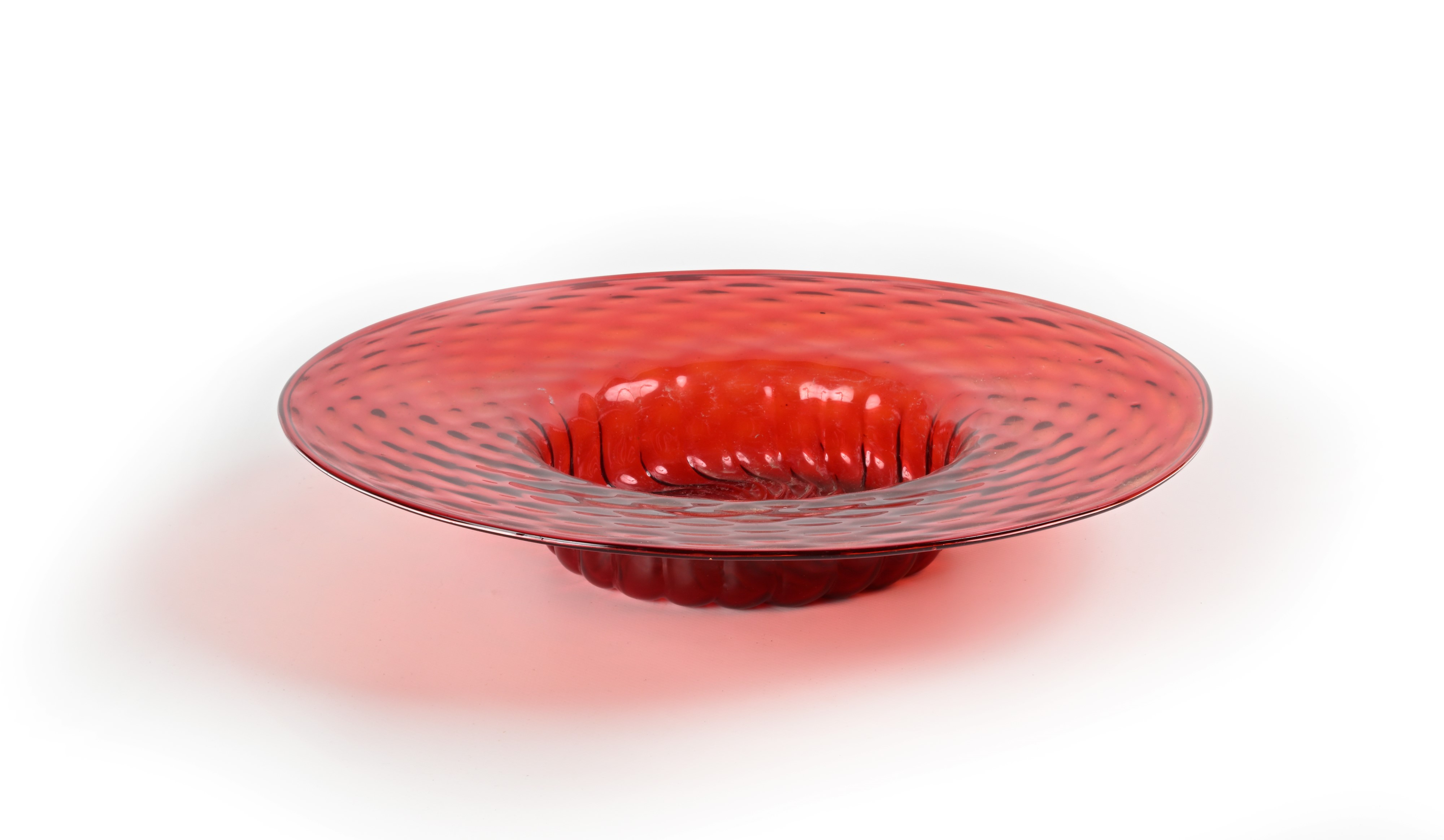 Vetro soffiato di Murano rosso trasparente lavorato a ballotton
