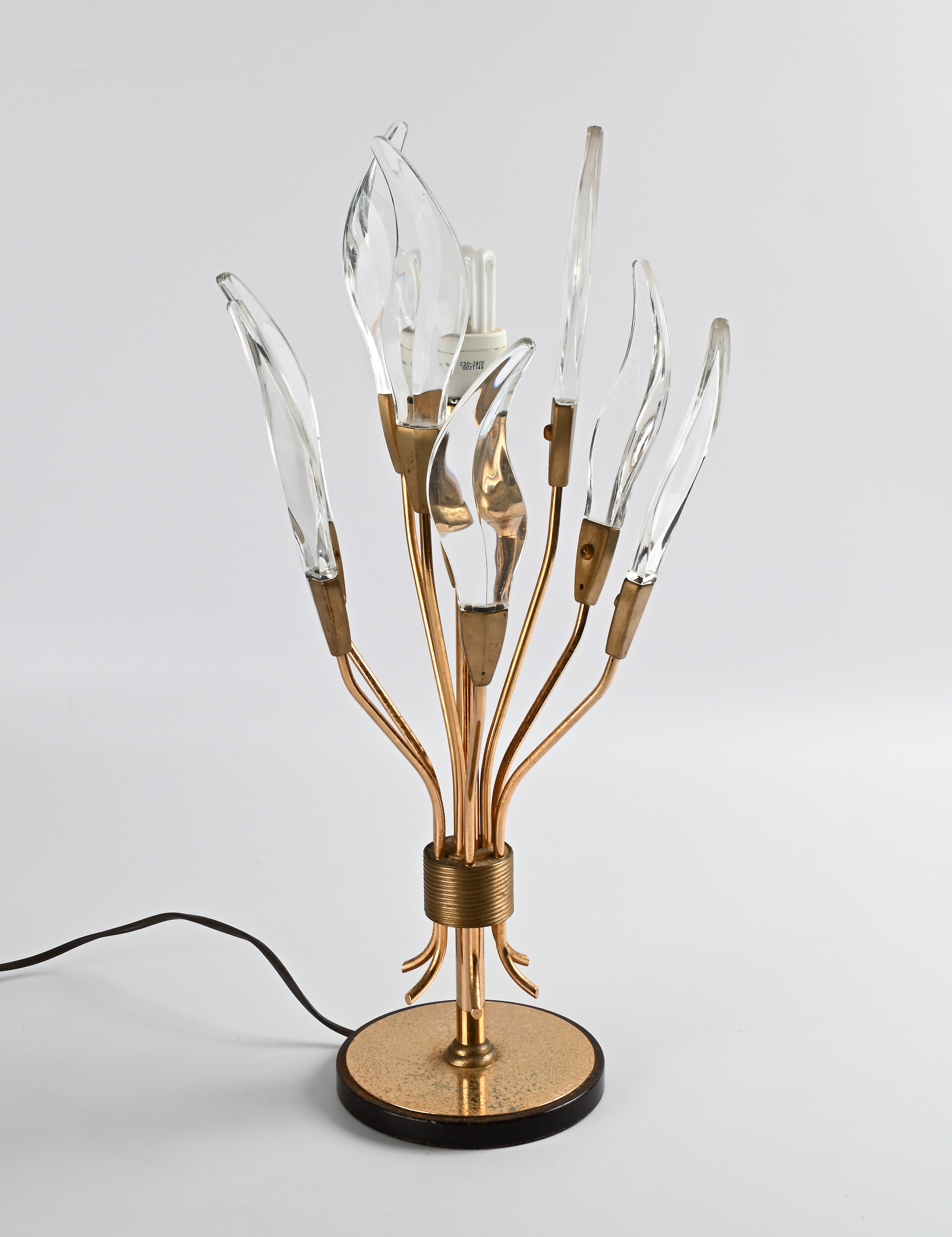 Struttura in metallo dorato e paralumi in vetro a forma di foglia