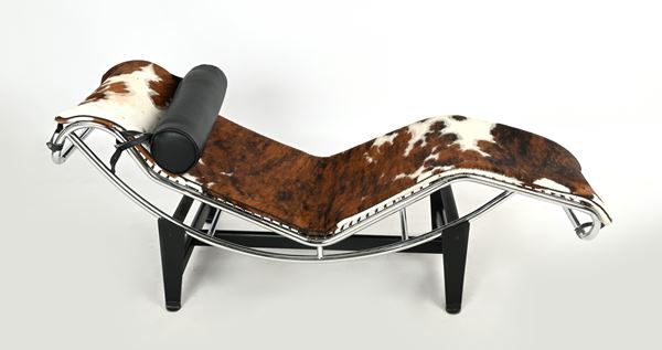 Struttura in acciaio tubulare e metallo verniciato nero, seduta imbottita e rivestimento in pelle di cavallino