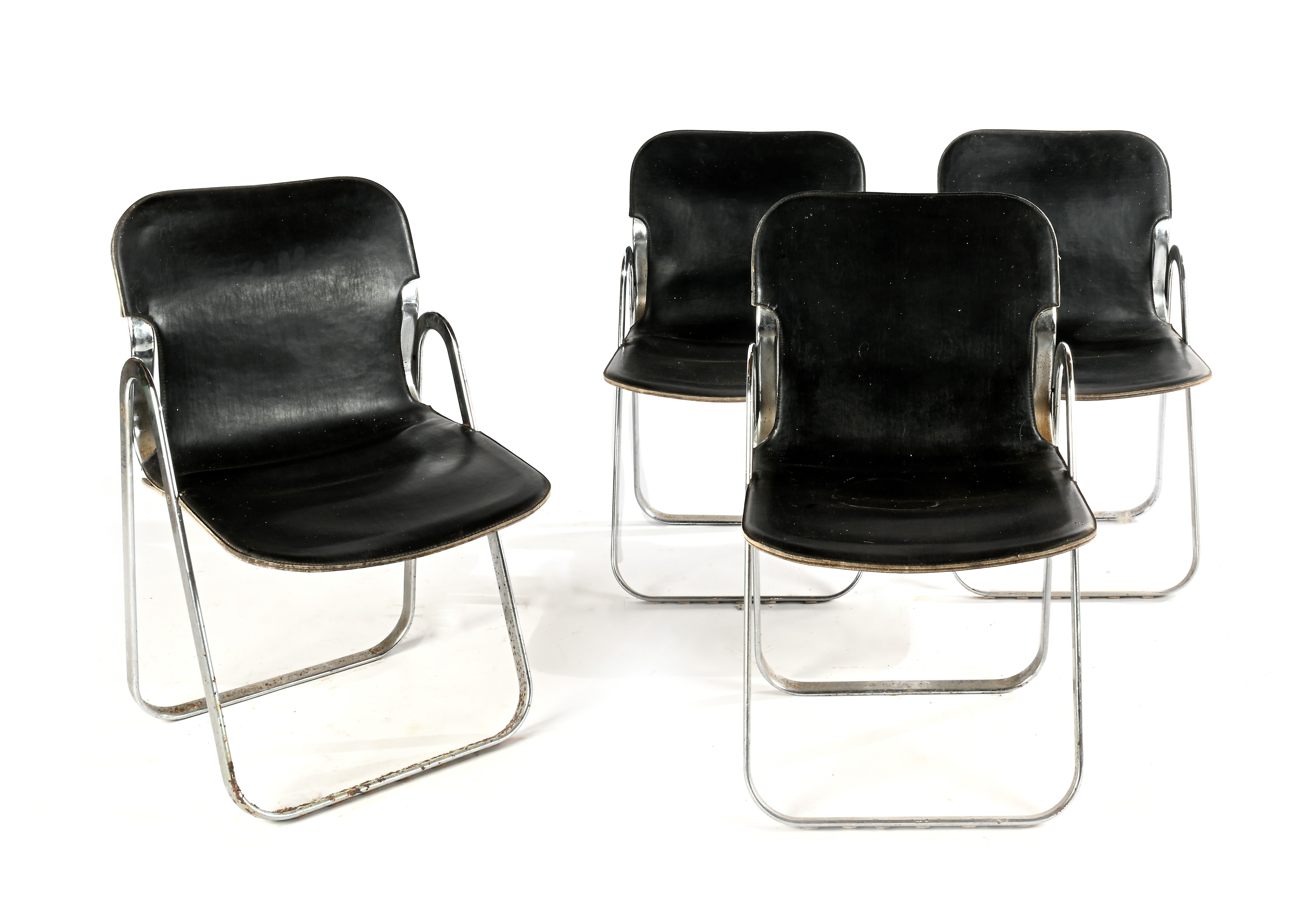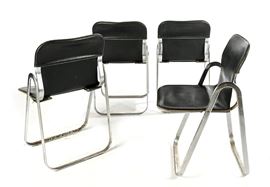 Lotto di 4 sedie in metallo cromato e cuoio nero