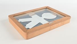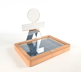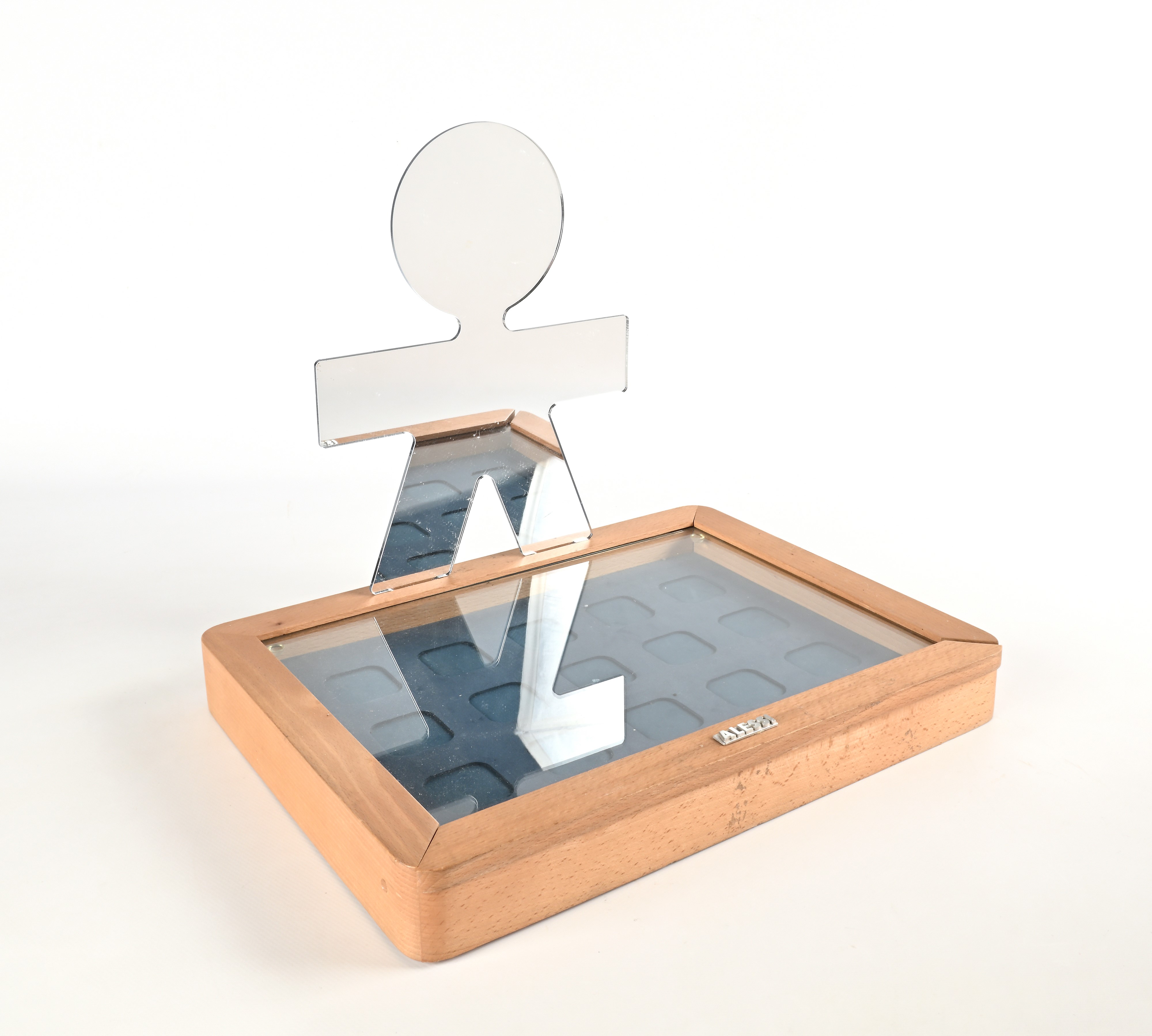 Specchio entro scatola in legno con sportello estraibile