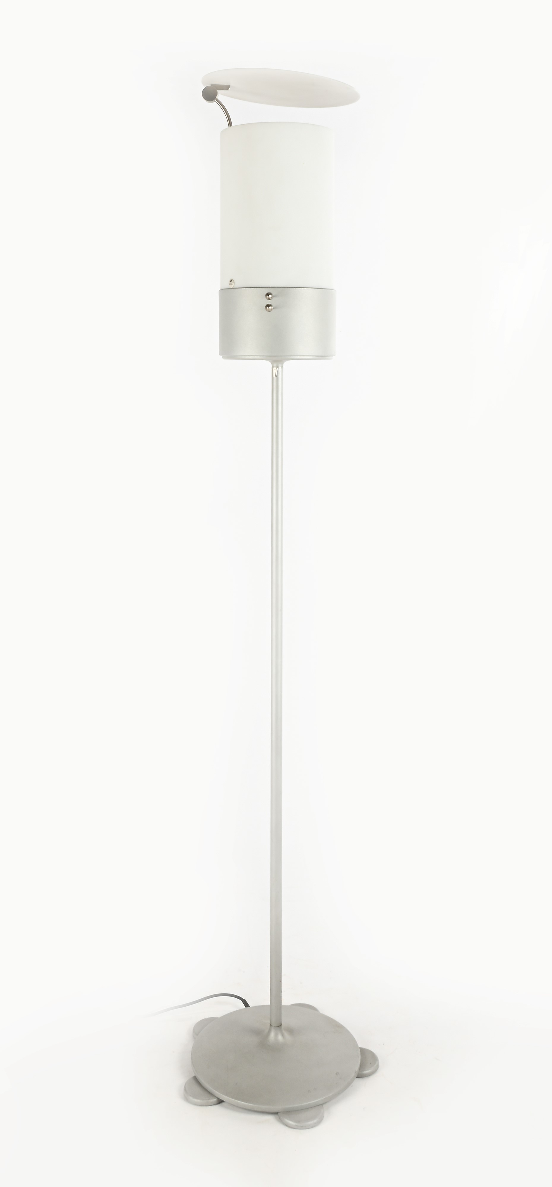 Struttura in metallo satinato e vetro opalino bianco manifattura De Majo