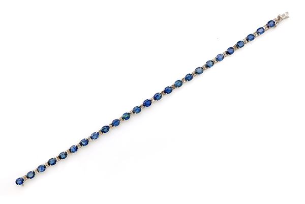 Bracciale tennis in oro, zaffiri e brillanti