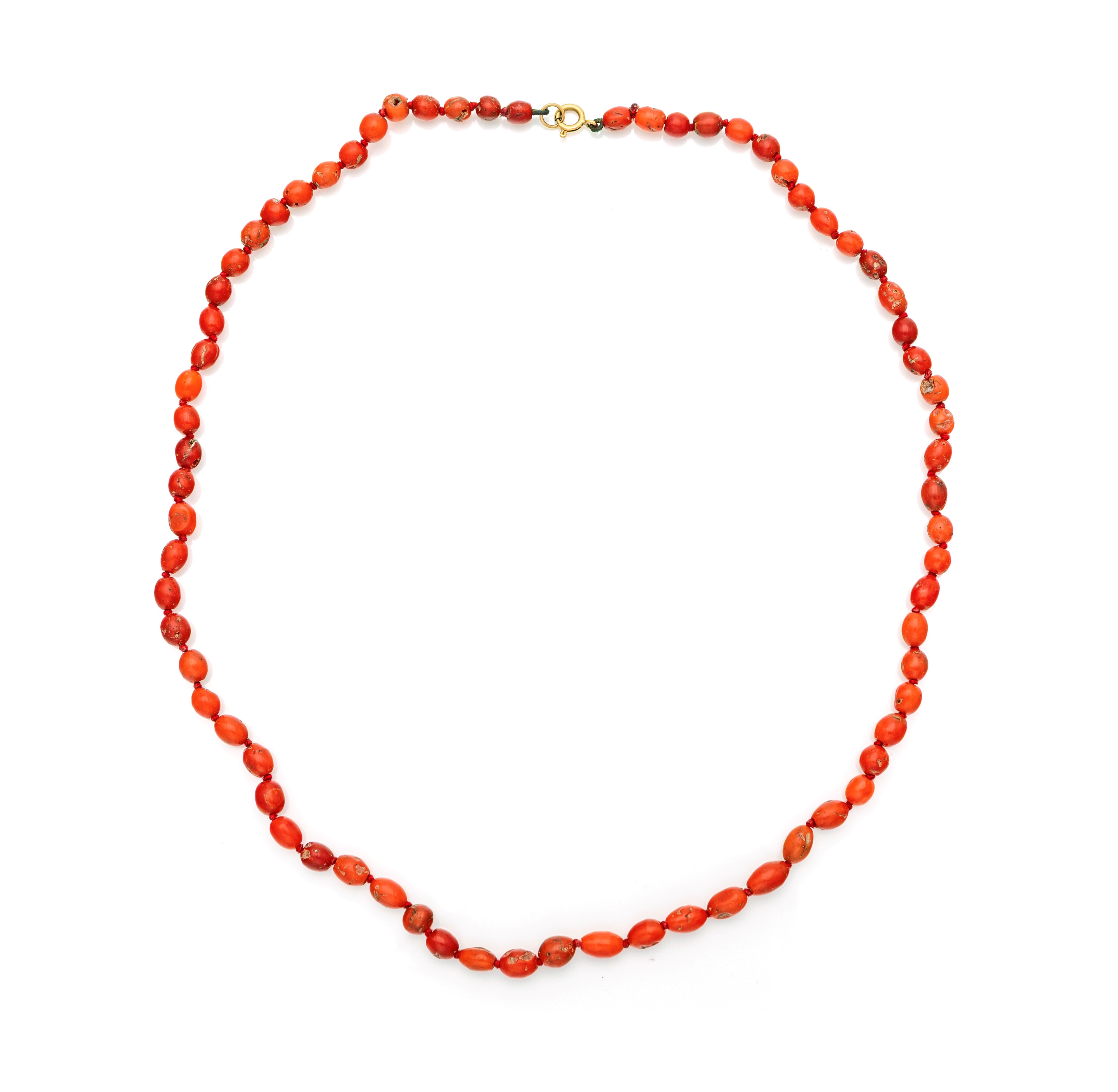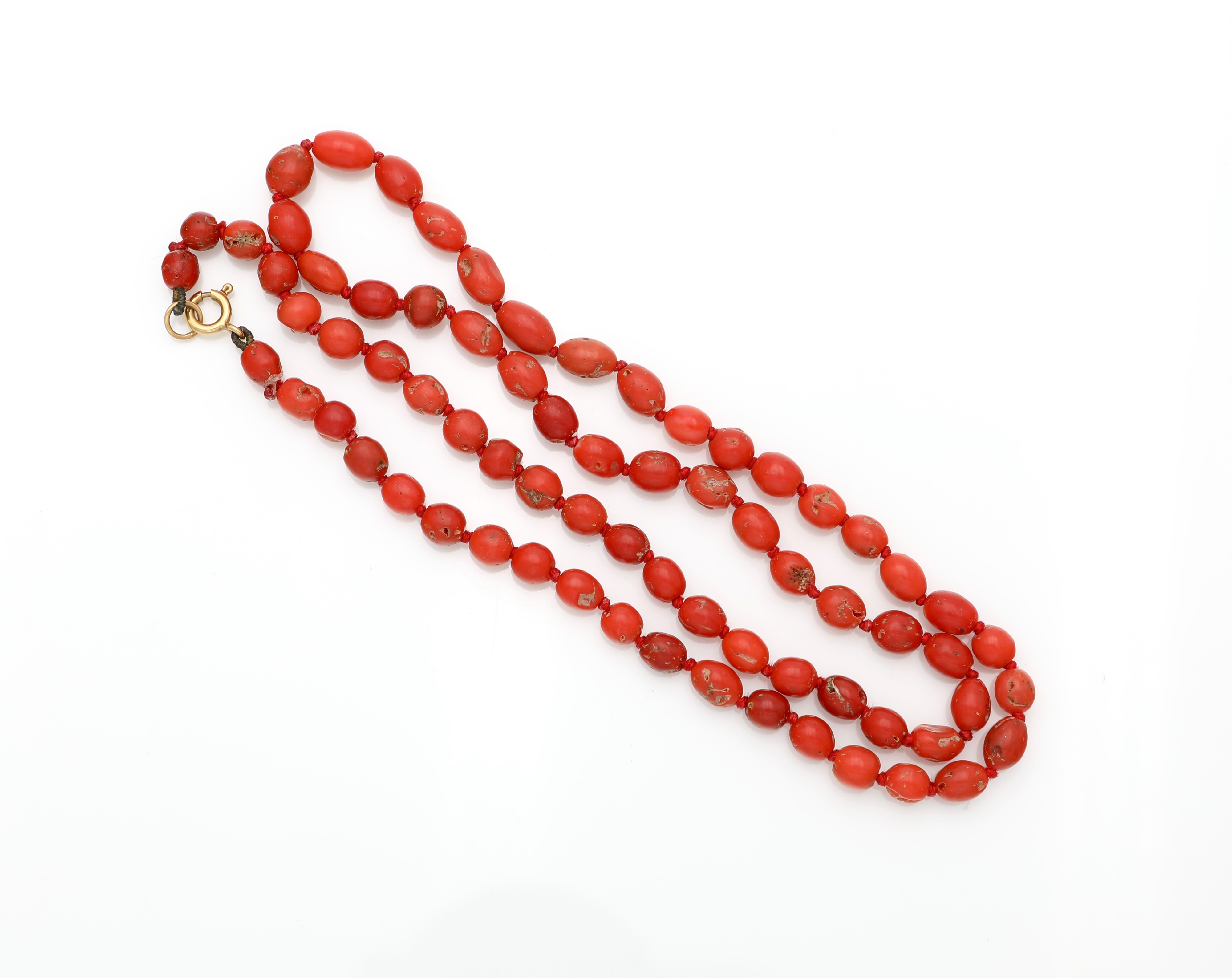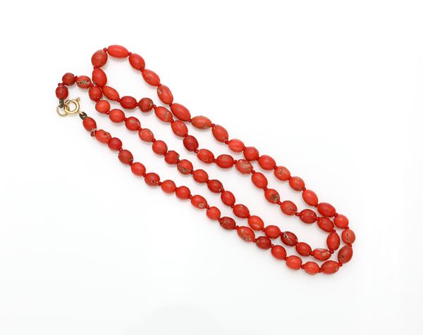 Oro giallo 750/000. Corallo mm. 6. Peso complessivo gr. 26.