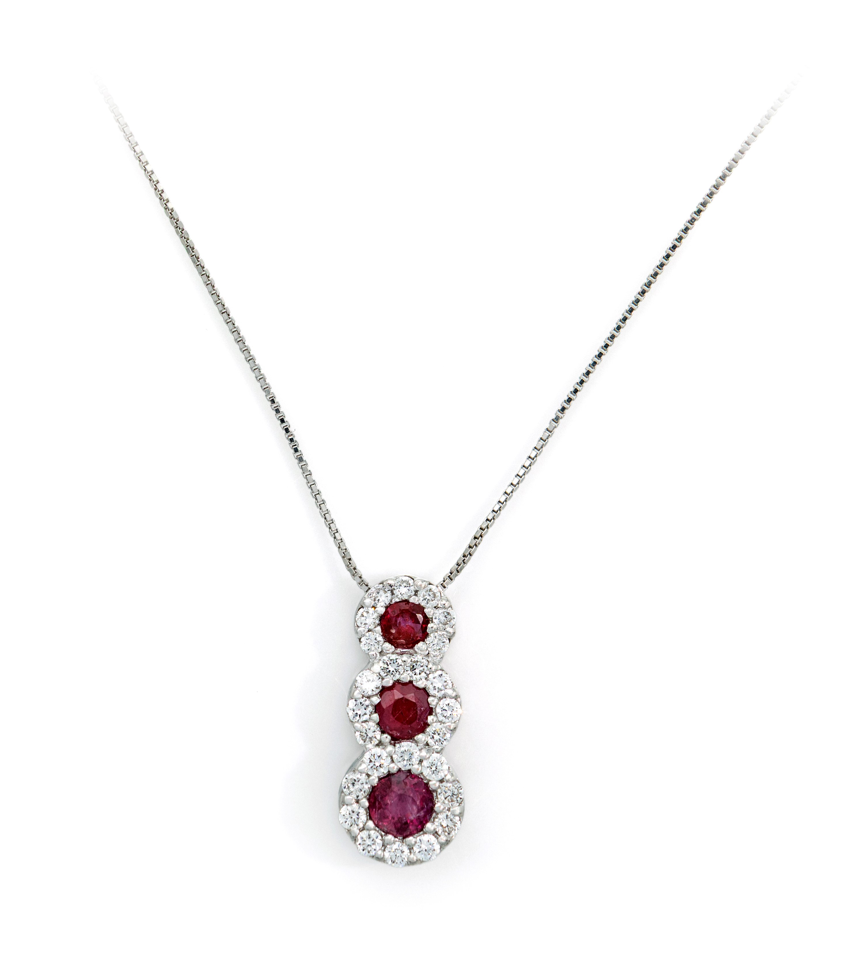 Oro bianco 750/000.Rubini ct. 0,50, diamanti ct. 0,30. Peso complessivo gr. 2