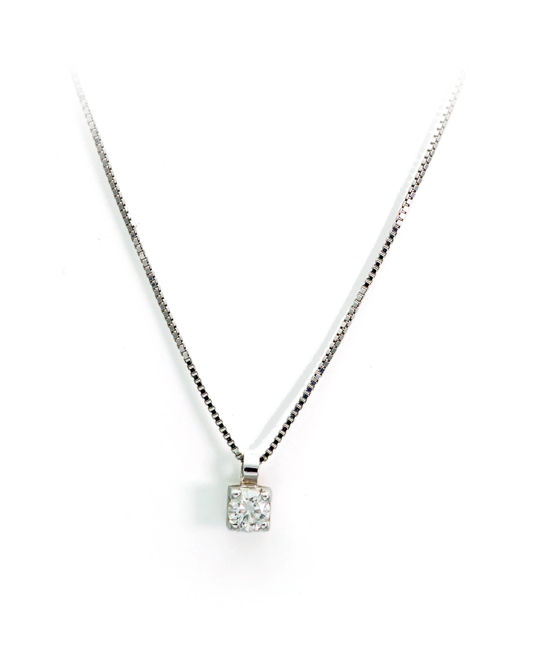 Oro bianco 750/000. Diamante in taglio rotondo brillante ct. 0,20 ca. Peso complessivo gr. 2,30.