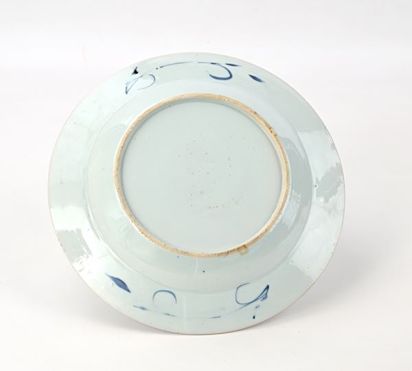 Coppia di piatti da portata circolari in porcellana bianca con decorazione monocroma blu, Cina, XVIII secolo