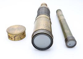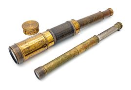 Due cannocchiali telescopici in ottone, di cui uno da marina rivestito in pelle, fine del XIX secolo