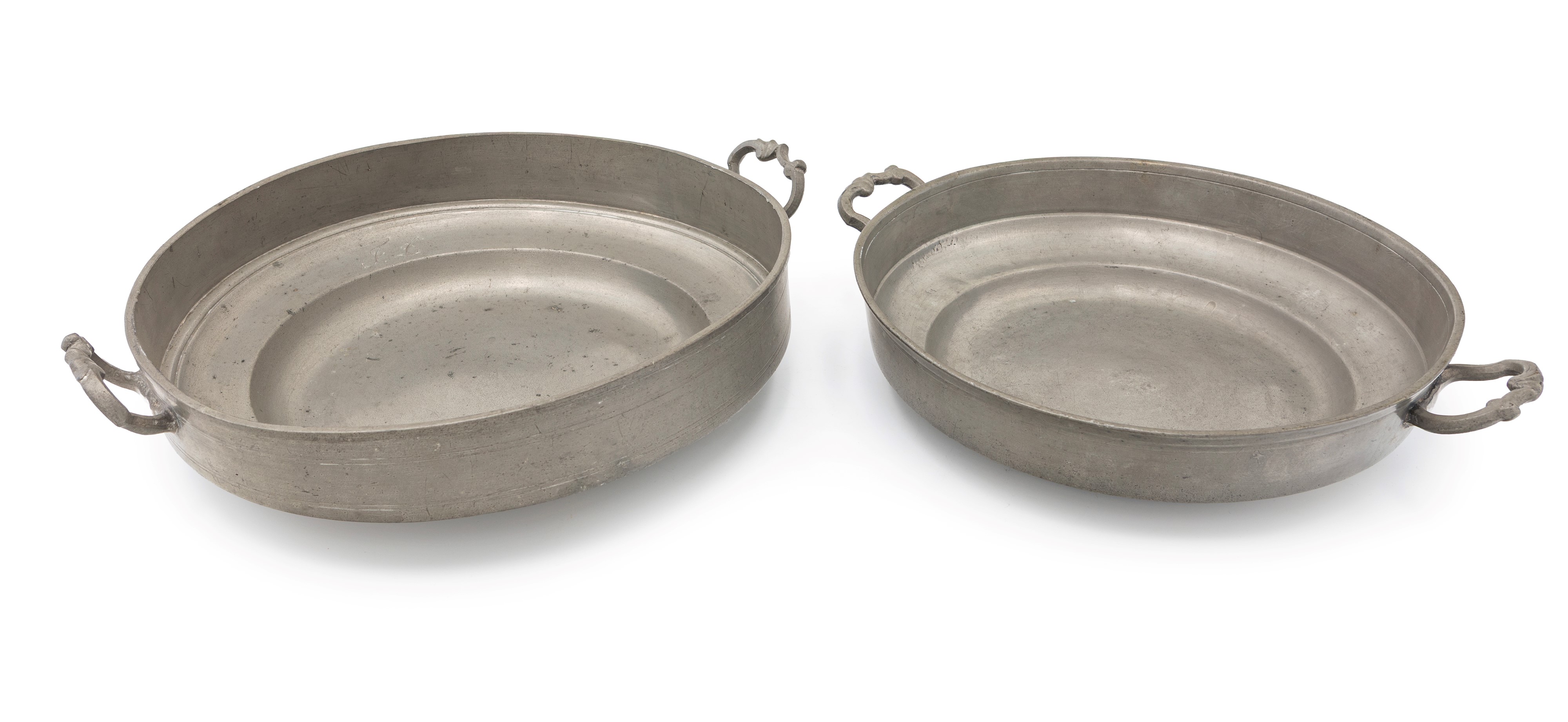 Due grandi portavivande circolari in peltro, Germania, XIX secolo