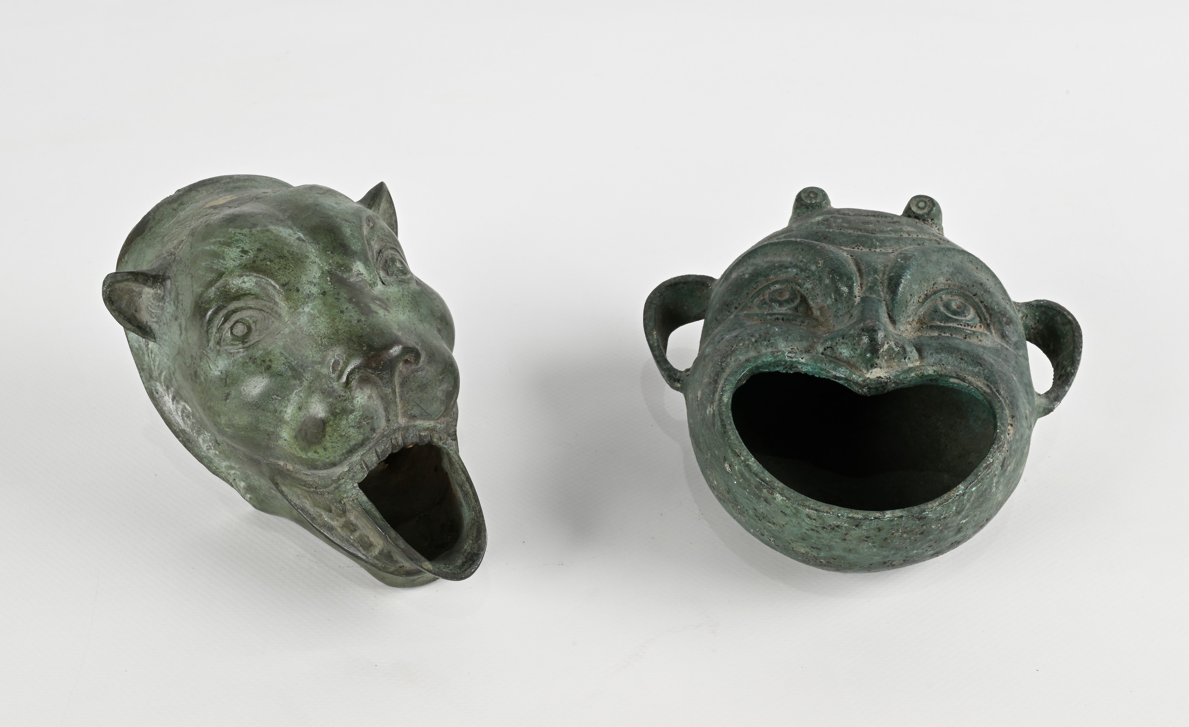 bocca zoomorfa di fontana e bruciaprofumi a forma di testa di diavolo