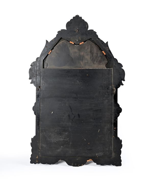 cornice centinata costituita da elementi sagomati in specchio con decorazione incisa a motivi naturalistici e cascatelle
