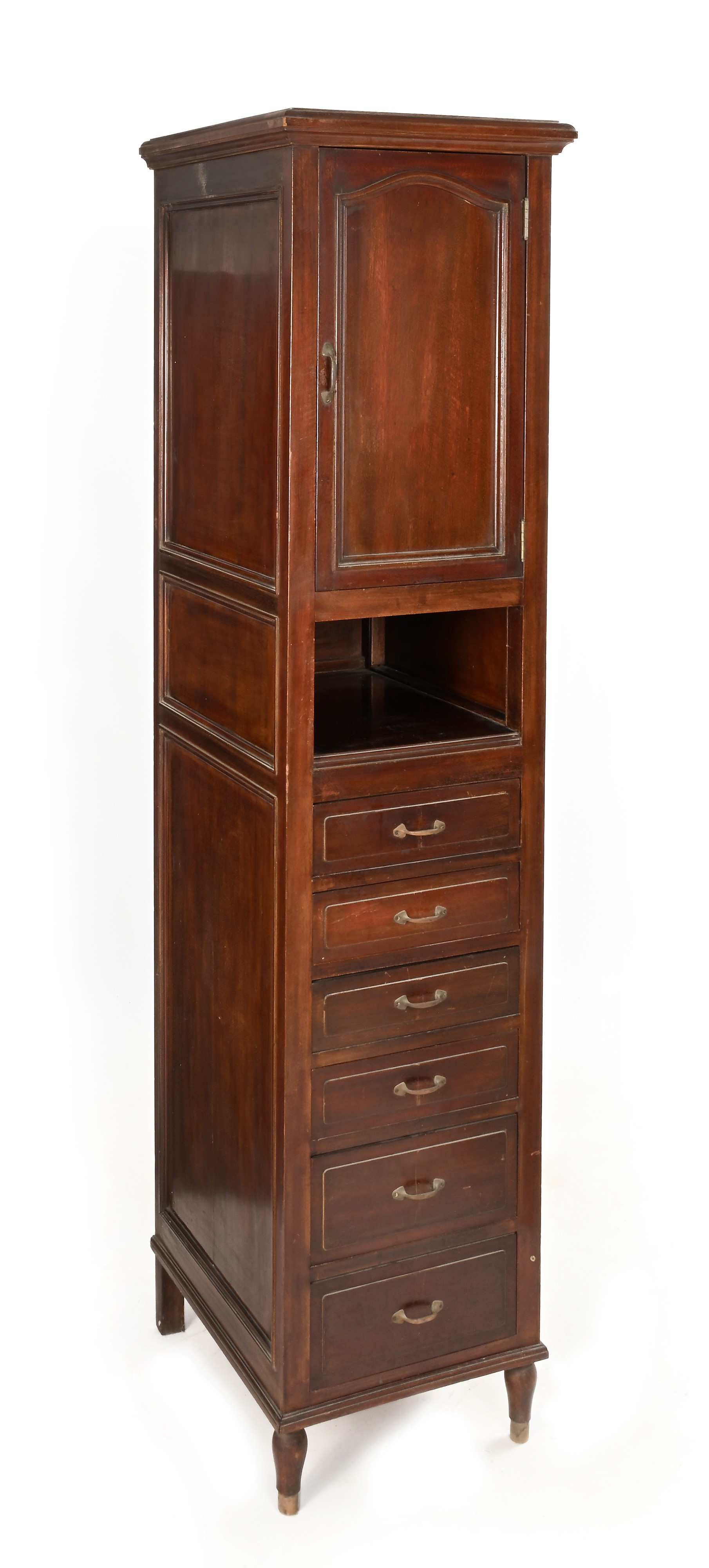 facciata suddivisa in un anta, un vano a giorno e sei cassetti in colonna