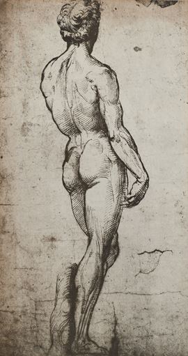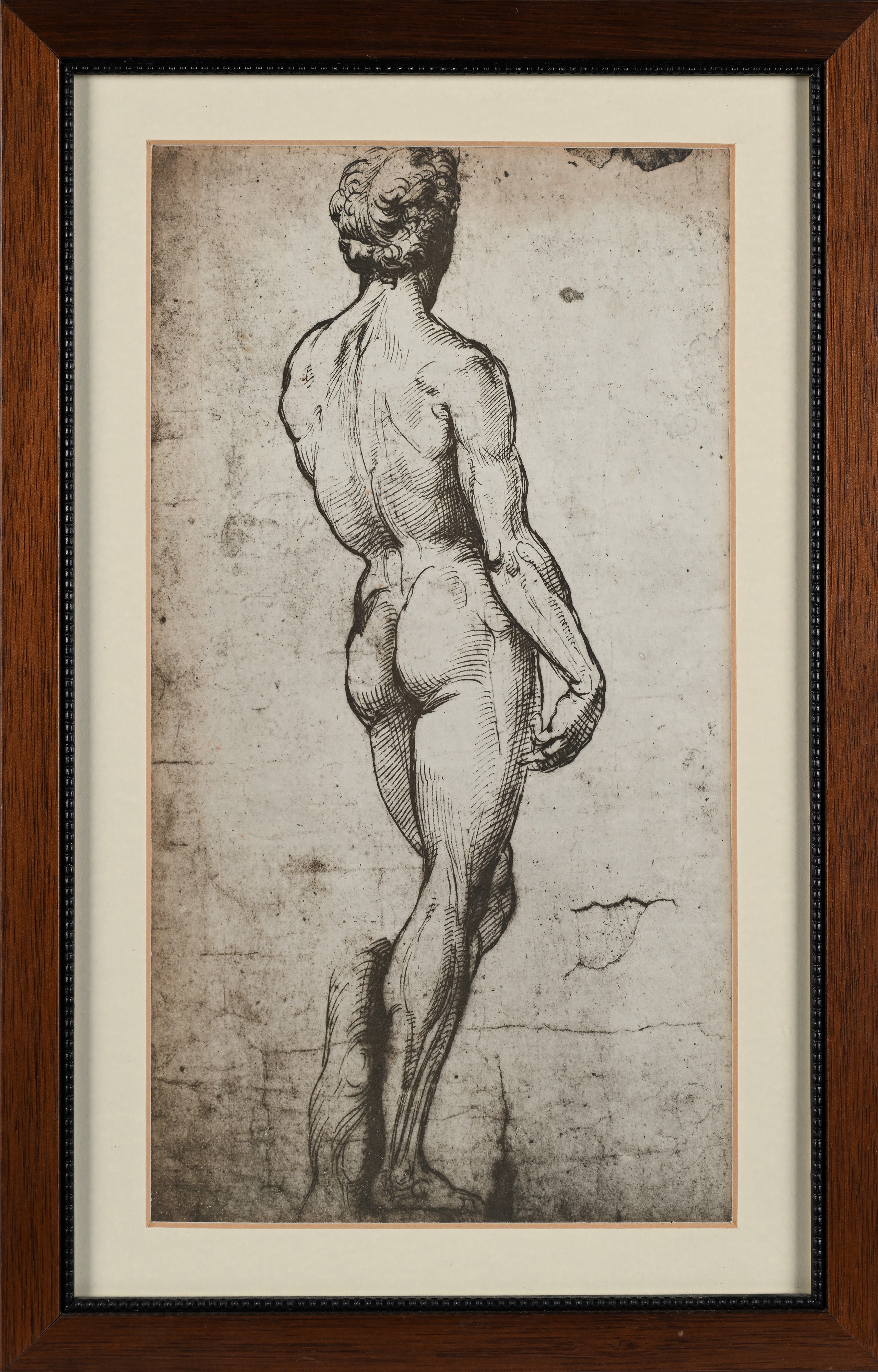 Nudo maschile da un disegno di Raffaello Sanzio sull'esempio del David di Michelangelo