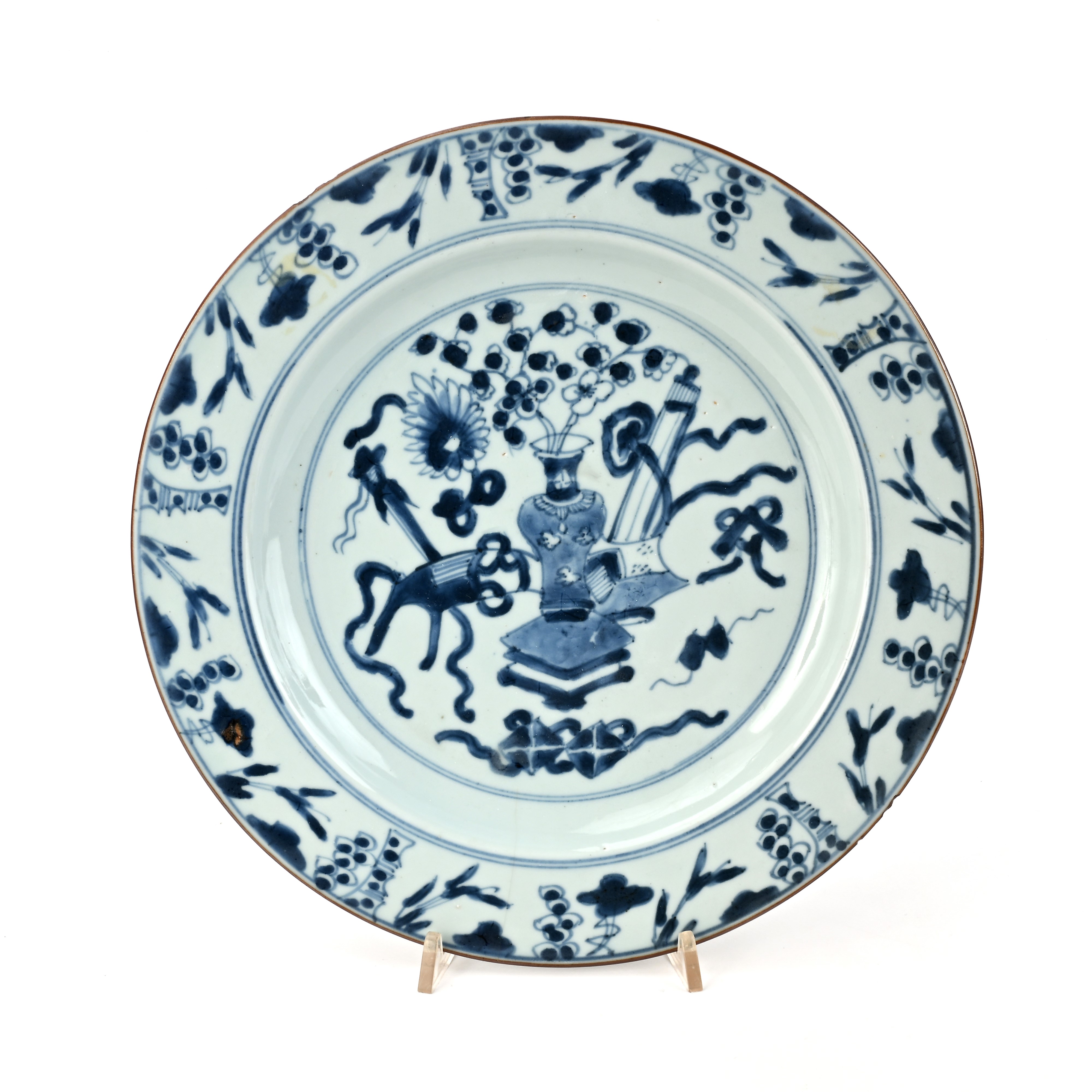 Piatto in porcellana bianca decorato in monocromia blu, Cina, Compagnia delle Indie, XVIII secolo