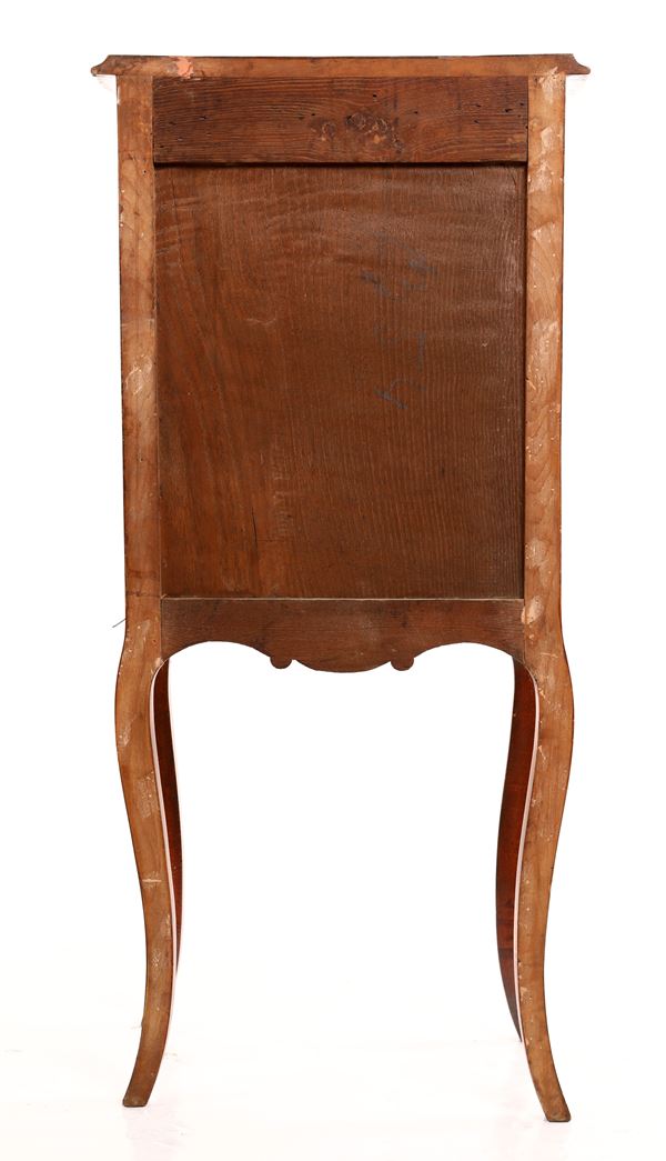 decorato da esili tralci "a colpo di frusta"; en suite con il lotto precedente, reca facciata lievemente sagomata suddivisa in quattro cassetti, gambe mosse