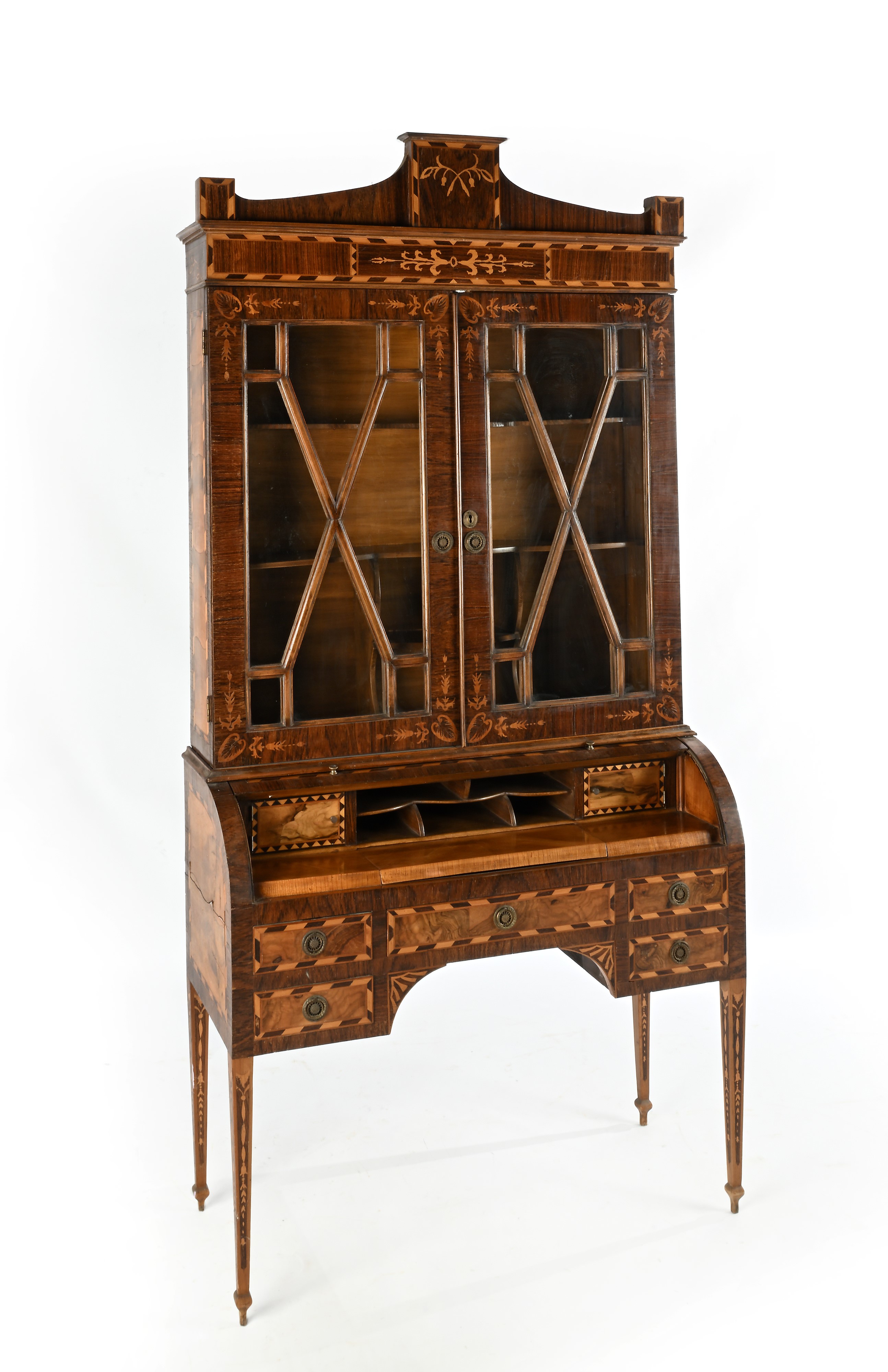 Scrittoio a rullo con alzata in legno intarsiato, XX secolo
