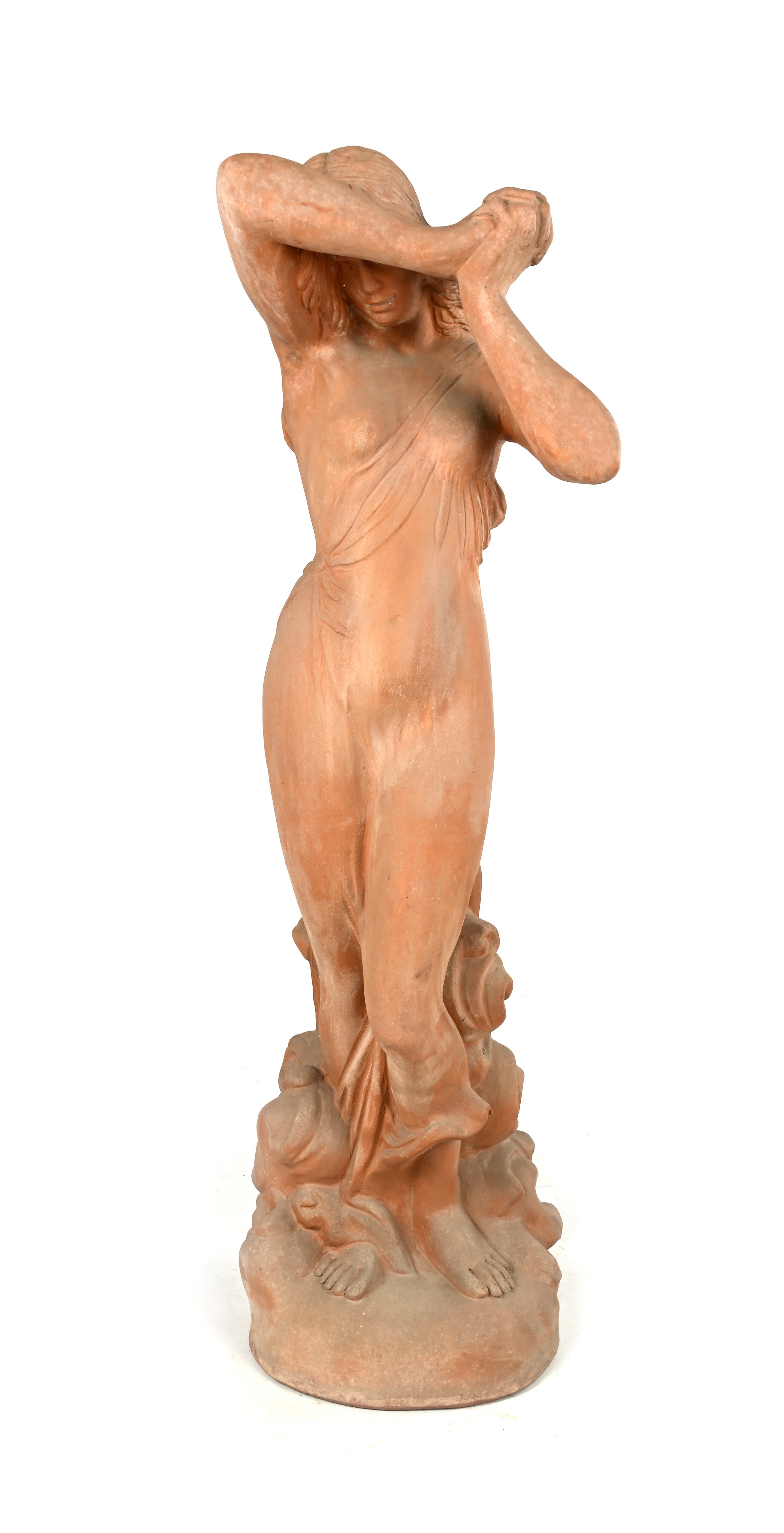 Scultura da giardino in terracotta raffigurante allegoria della pudicizia