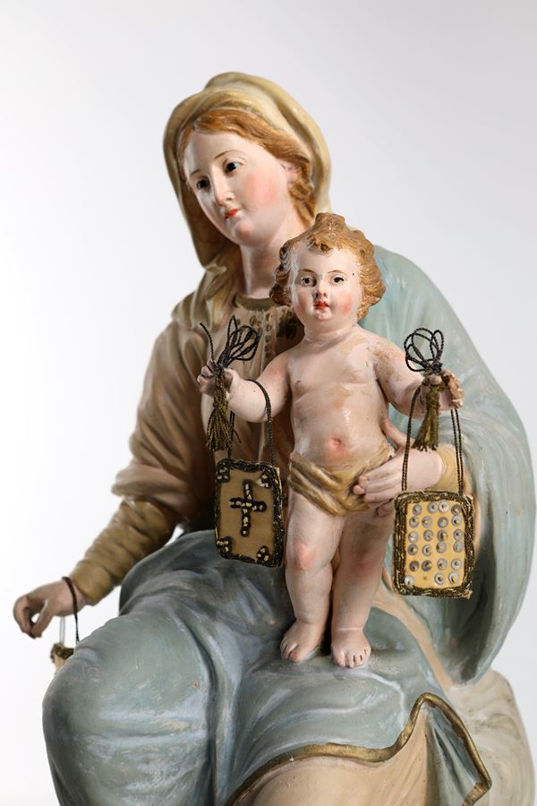 Scultura in terracotta policroma raffigurante Nostra Signora del Monte Carmelo, Napoli, inizi del XX secolo