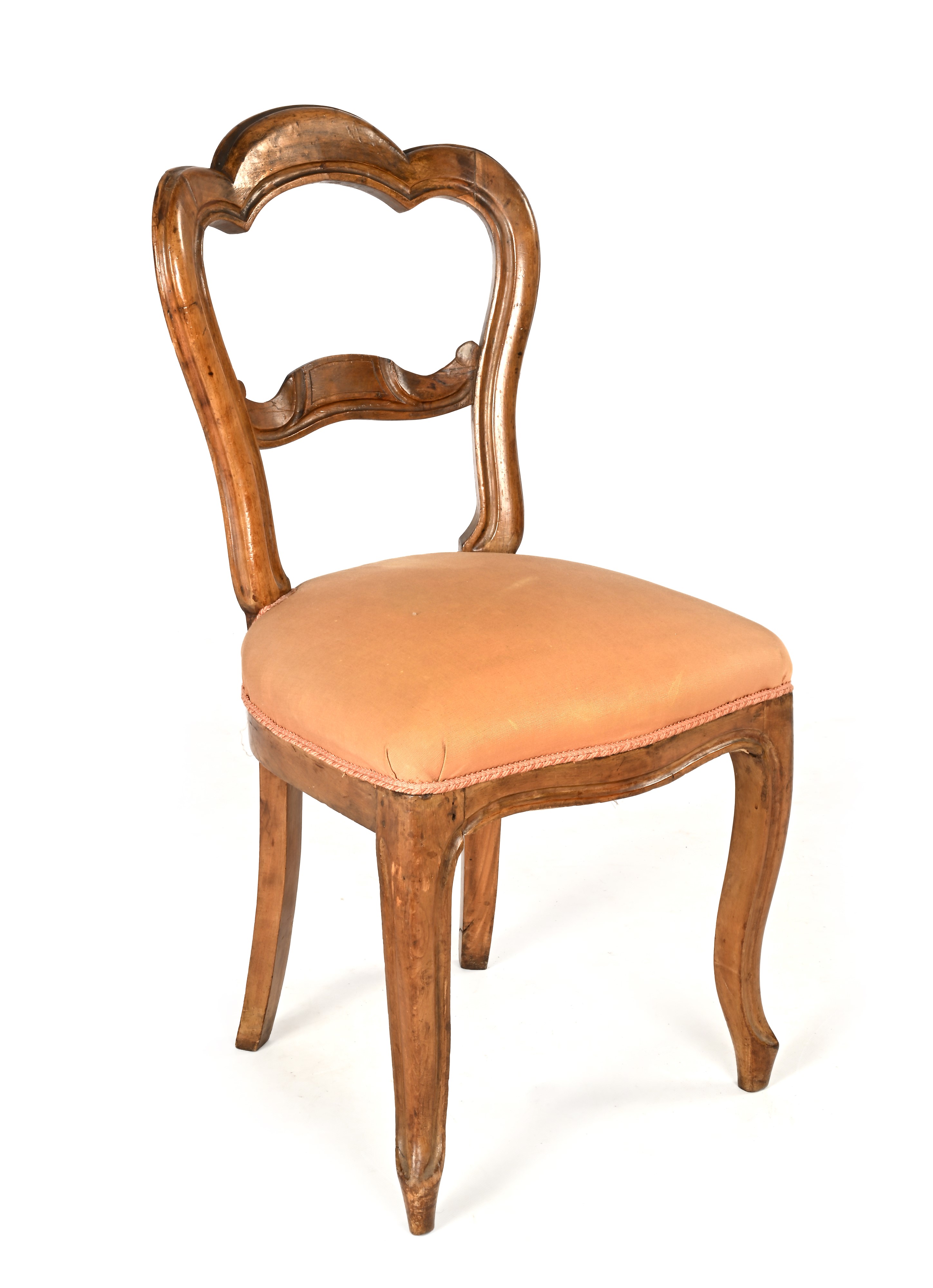 Sedia in noce con schienale a giorno e sedile imbottito