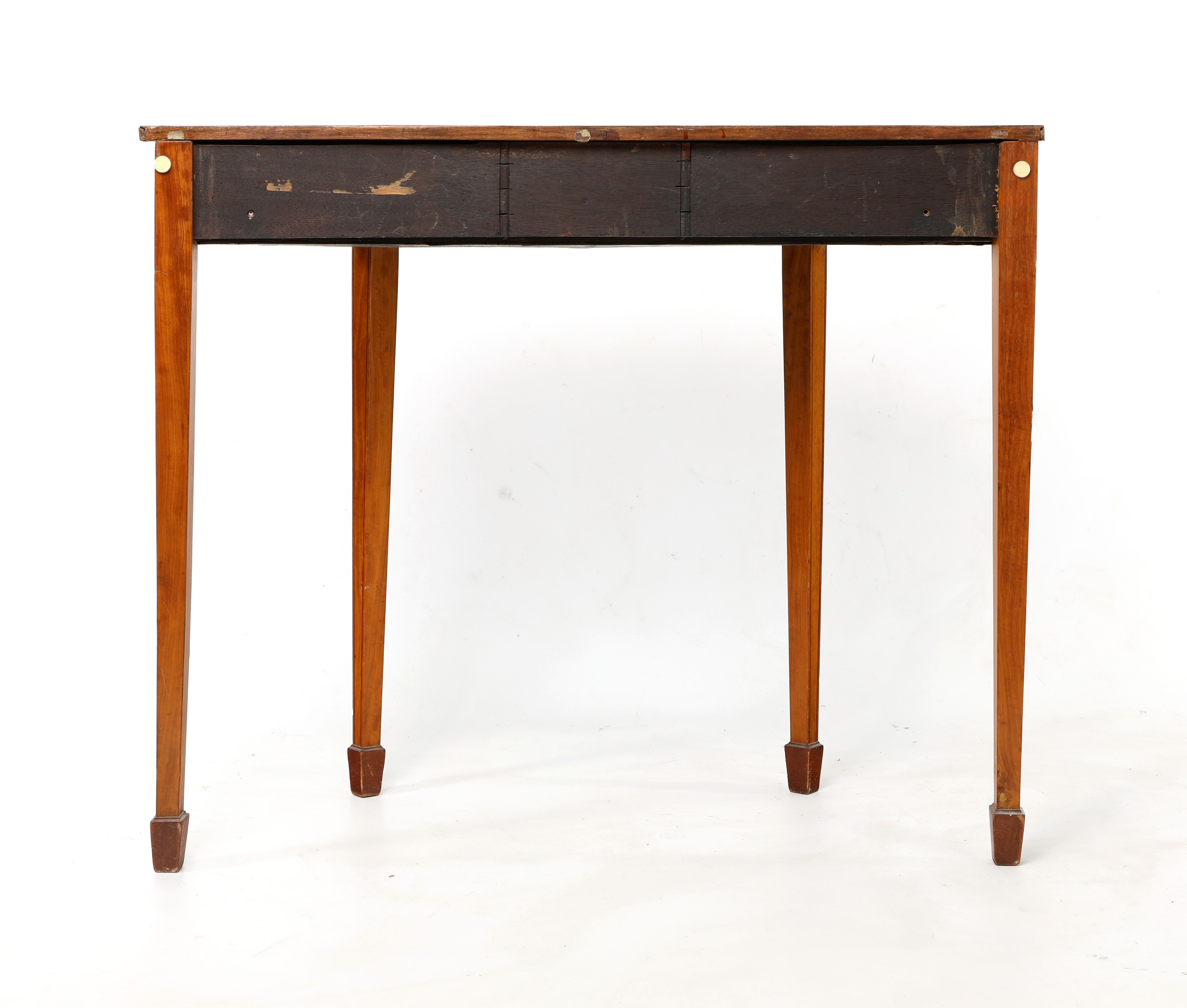 piano decorato a raggiera definita da sottili filettature lineari riprese a cornice delle varie partizioni; gambe rastremate. Difetti