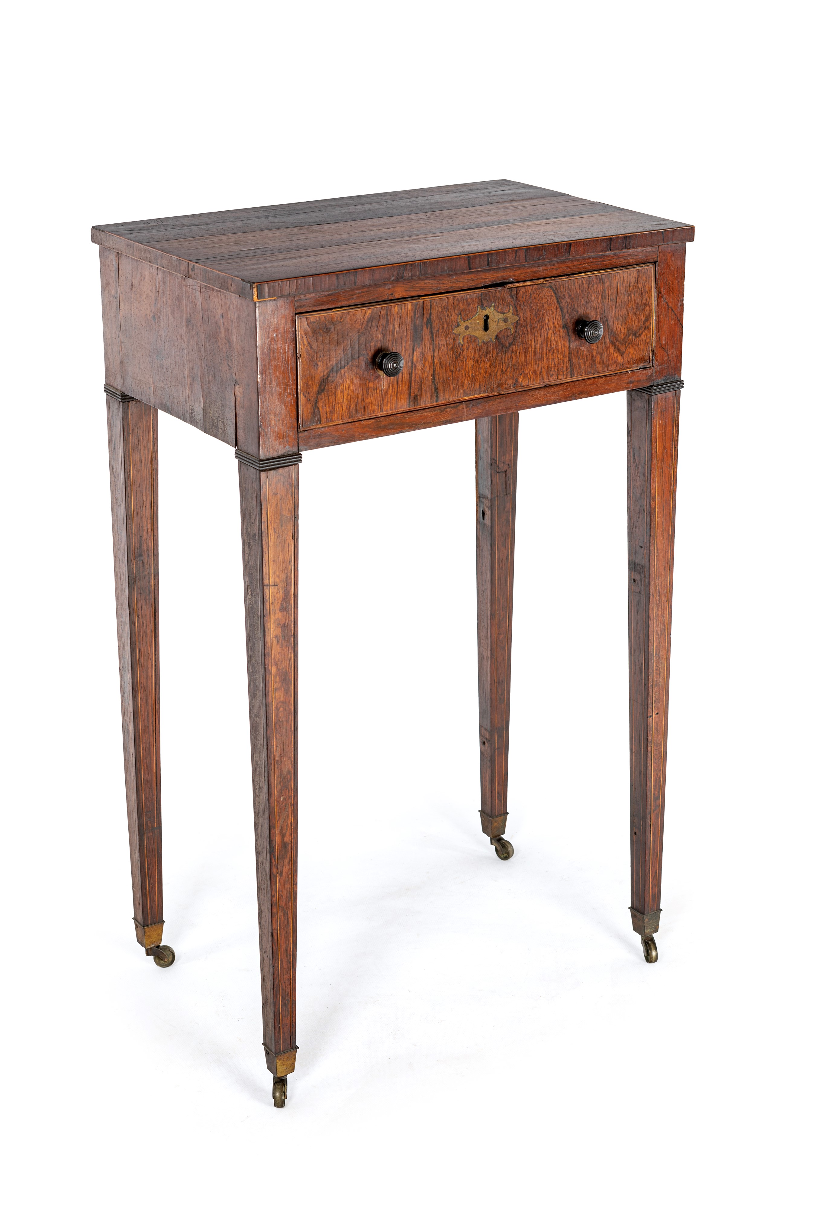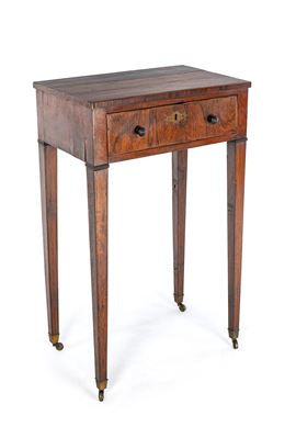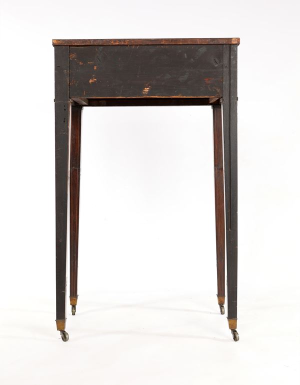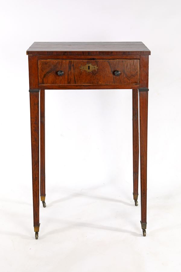 piano rettangolare, un cassetto nella fascia, lunghe gambe rastremate