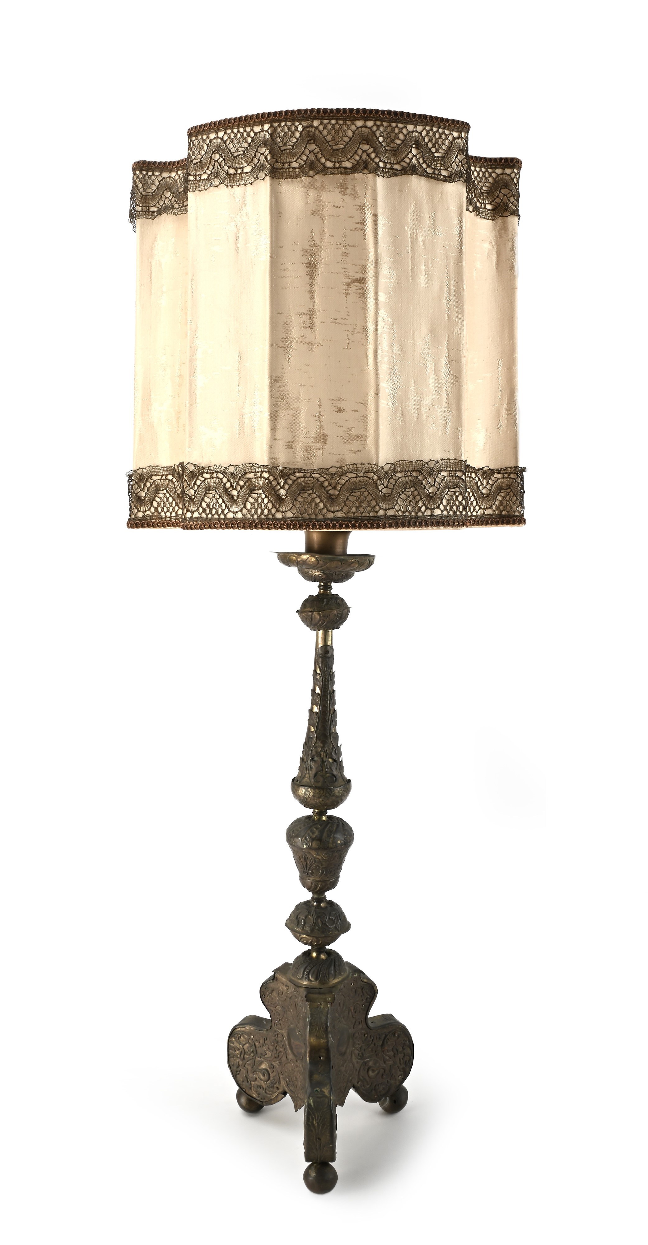 Torciera in legno rivestito di metallo sbalzato a motivi vegetali, XVIII secolo
