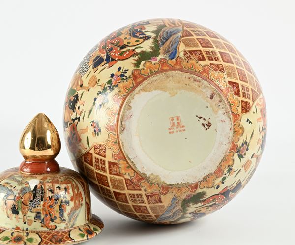 Vaso con coperchio in porcellana Royal Satsuma, Cina, XX secolo