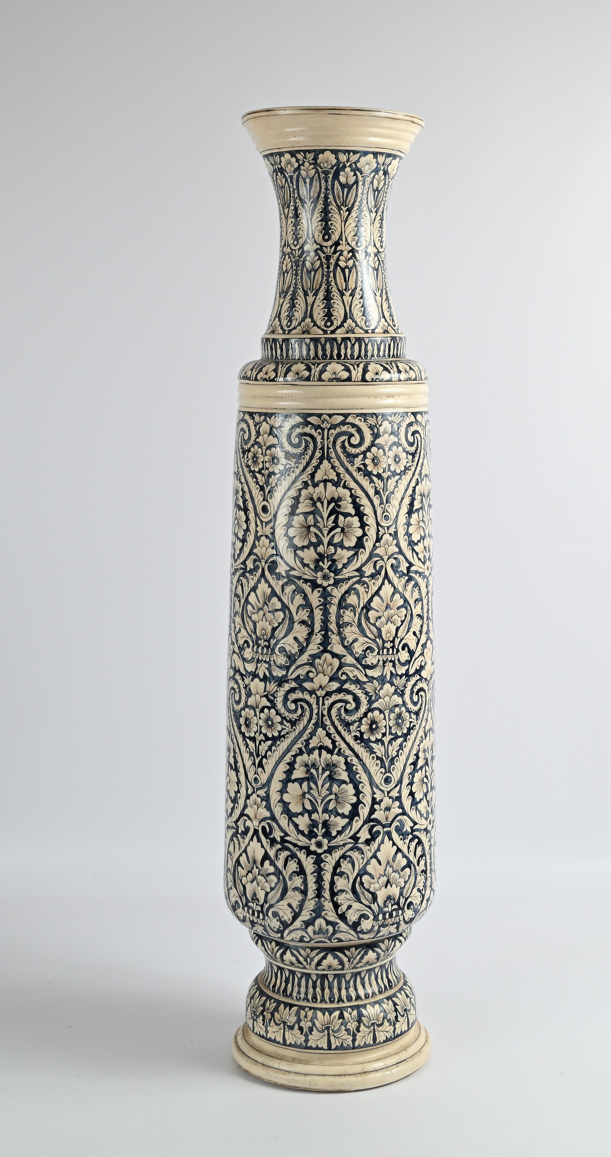 Vaso in maiolica bianca e blu a motivi di gusto islamico, XX secolo