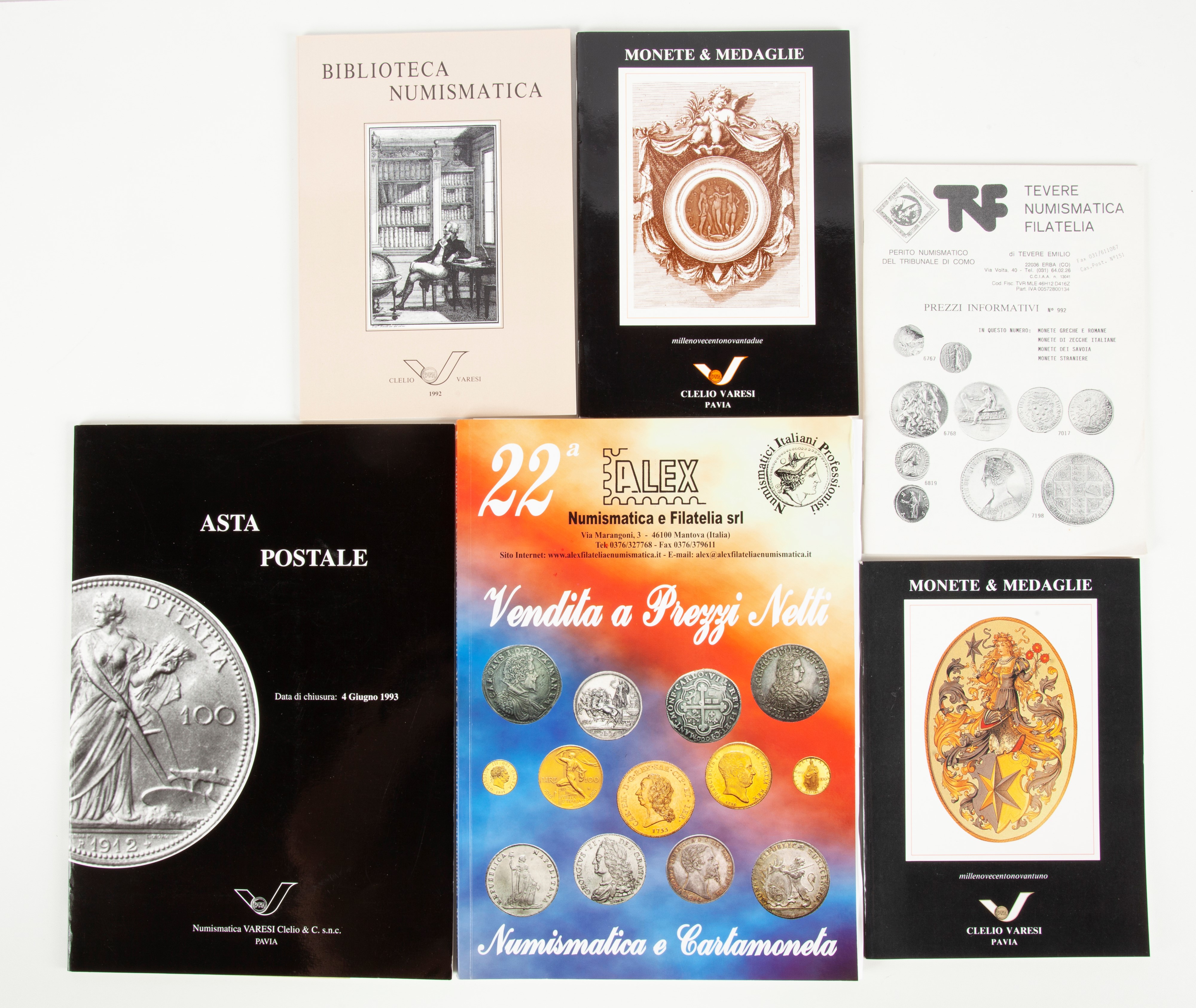 Artemide Aste San Marino: 5E (dicembre 2012); XXXII (aprile 2011); Titano San Marino n.50 (settembre 1992); Aes Rude Chiasso n. 16 (aprile 1994); Numismatica Varesi Pavia Asta Postale (giugno 1993); InAsta San Marino n.39 (maggio 2011); Italphil Roma XXXIX-2005; Sintoni Forlì n.5 (Marzo 2012); Alex Numismatica Mantova nn. 20 e 22; Clelio Varesi Pavia Cataloghi Monete & Medaglie 1991 e 1992, Biblioteca Numismatica 1992; Tevere Numismatica Como Catalogo 992.