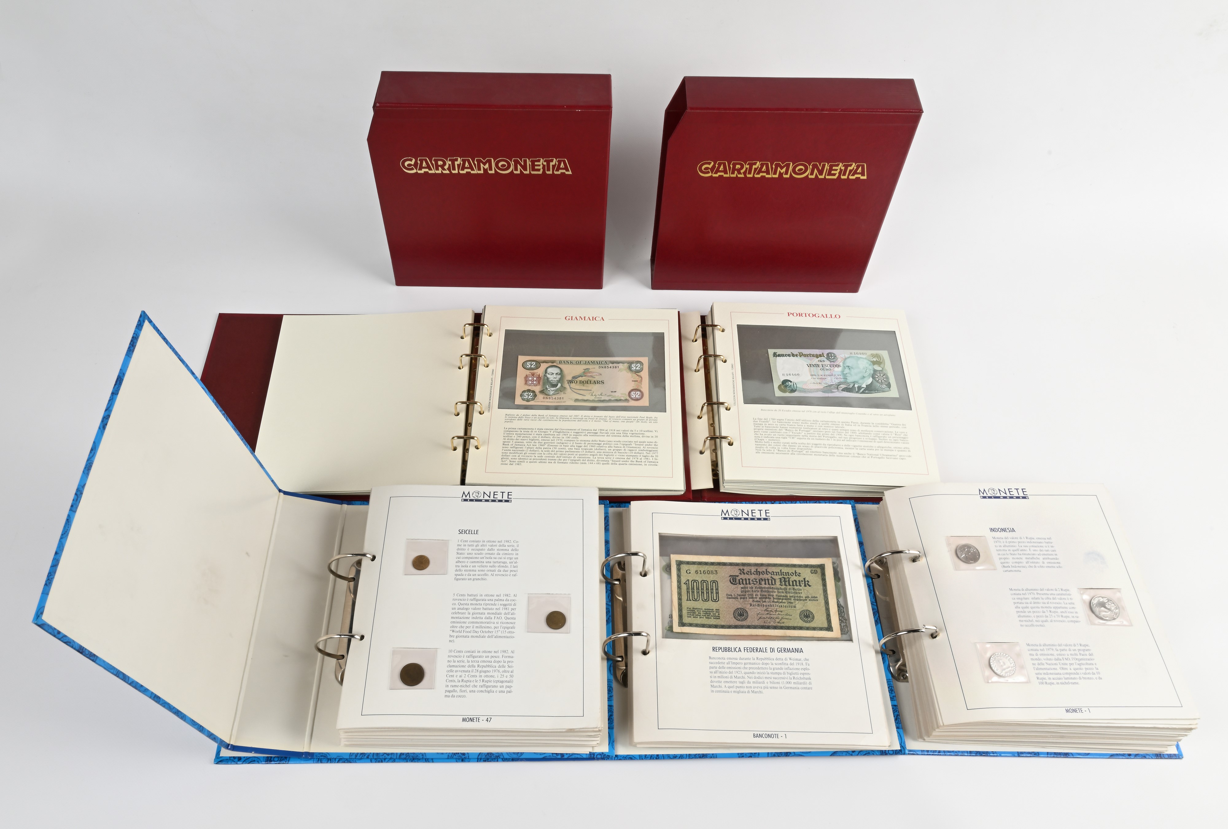 2 volumi con 50 banconote estere "Collezioni monografiche Bolaffi" e 3 volumi "Monete e cartamoneta del mondo Bolaffi"