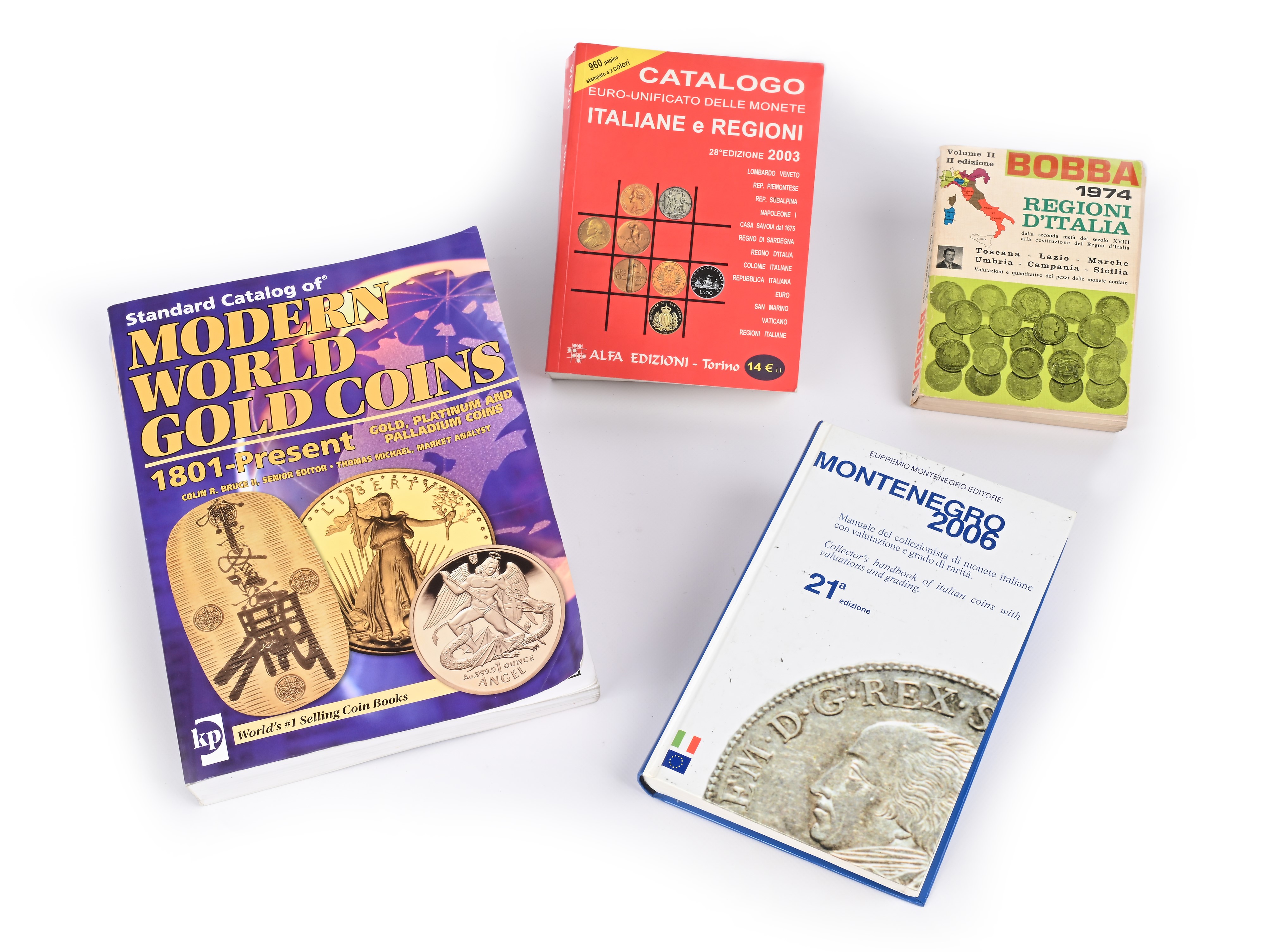 4 Volumi di numismatica: Standard Catalogue of Modern World Gold Coins 1801 to present, Edizione 2007; Catalogo Euro Unificato monete Italiane e Regioni Edizione 2003; Montenegro Edizione 2006; Bobba Regioni d'Italia Edizione 1974